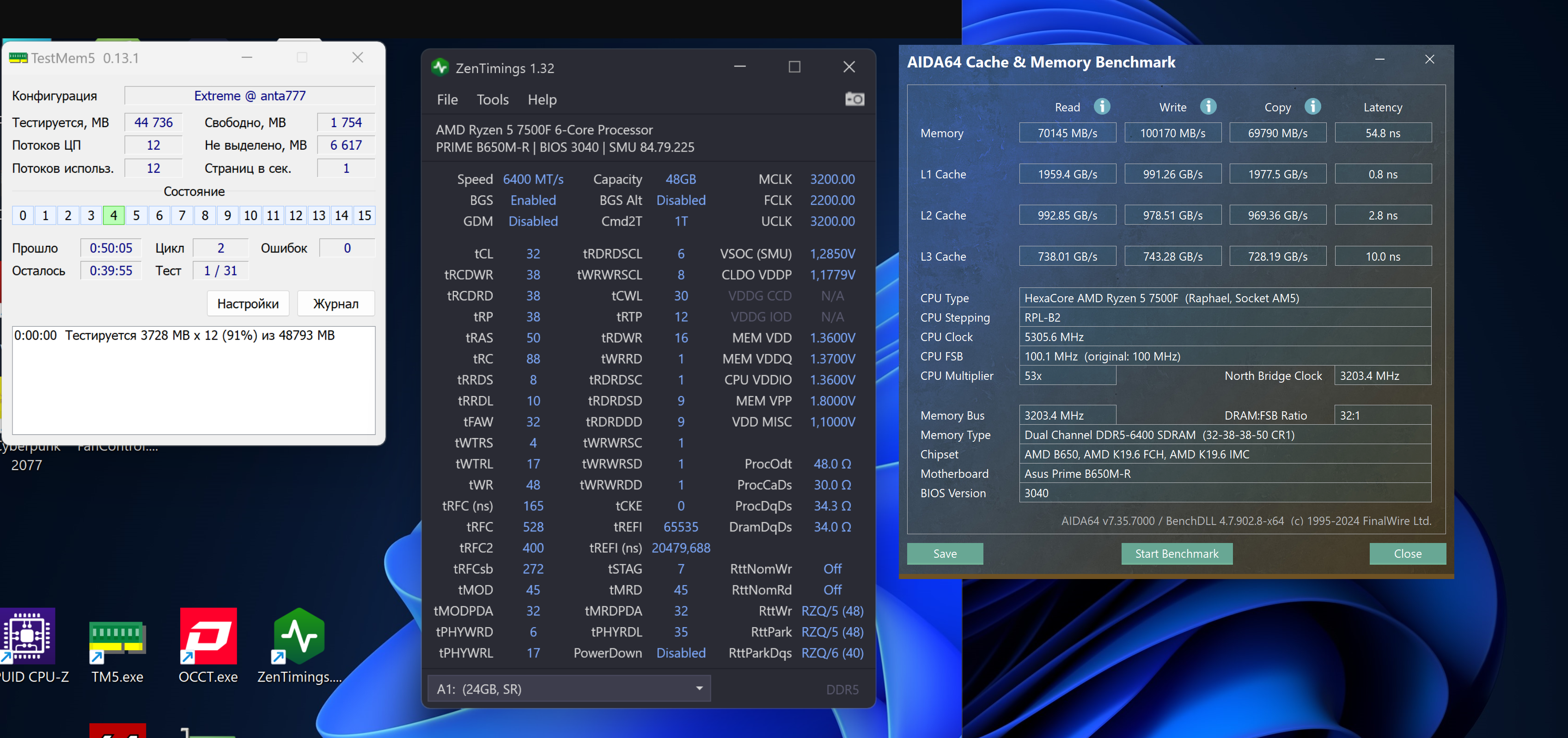 На великую истину не претендую. Если что можно поправить - поправлю. tWR, tRD = 40, так как с 39 ошибки в TM5 и бсоды. С 40-ками же, 5 часов TM5 с профилем anta777 - без ошибок и вылетов. Проверку Батлой 2042 на 128 человек, Аланом Вейком 2, Dying Light 2 - так же проходит без фризов, желейности и прочих проблем. Аиду запускал в безопасном режиме.