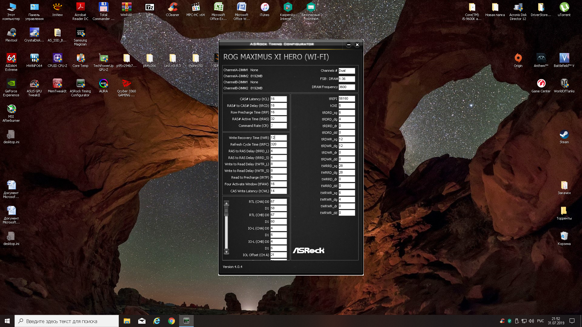 WTR у ASUS через третичные ставится (когда крутите WRRD то оно меняет WTR), WR через WRRPE. Подозреваю, что RDPRE это тоже самое что RTP. Сомневаюсь, что тайминги вам мешают подняться по частоте. ASUS в авто вроде нормально гонит. Просто WTR не используется в DDR4. Надоели эти бивисописатели дающие доступ к производным или вовсе не используемым таймингам.