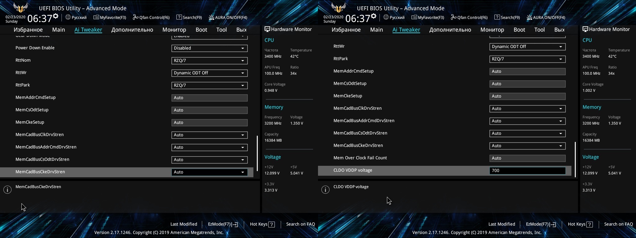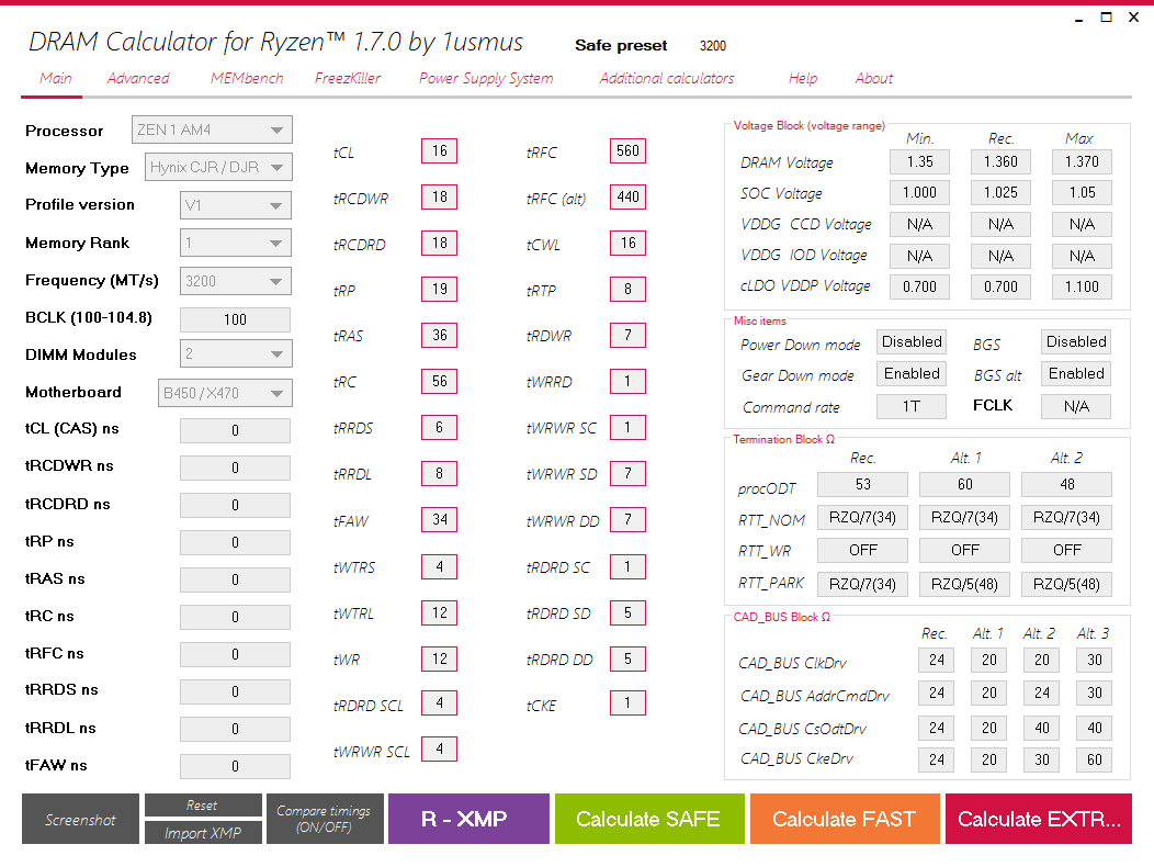 В калькуляторе нету пункта Trfc4 нужно ли там что-то прописывать, или оставить на авто? Так же, в калькуляторе есть Trfc и Trfc (alt) правильно ли понимаю, что у меня это Trfc и Trfc2 ? В калькуляторе пункт Command rate 1Т, у меня единственное где есть 1Т и 2Т, это Cmd2T, это один и тот же пункт? Так же, в калькуляторе cLDO VDDP Voltage стоит 0.700, у меня же, если выставить 0.700 и нажать энтер, становится просто 700, правильно ли оно? И правильно ли пункты с калькулятора: procODT; RTT_NOM; RTT_WR; RTT_PARK; у меня выставлены правильно?