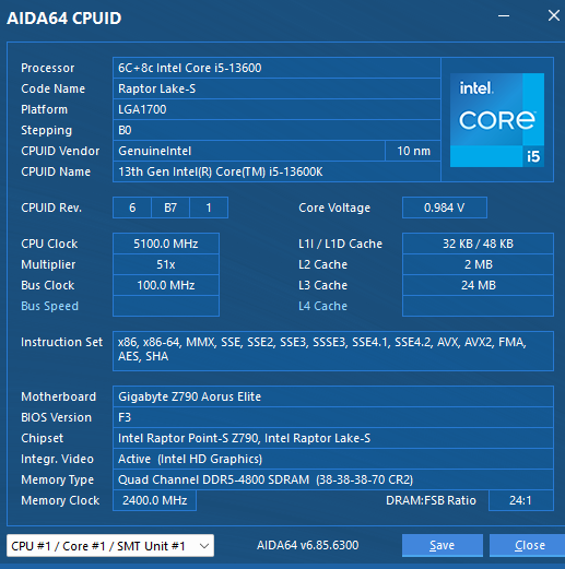 Всем привет, столкнулся с проблемой на конфиге - GIGABYTE AORUS z790 ELITE