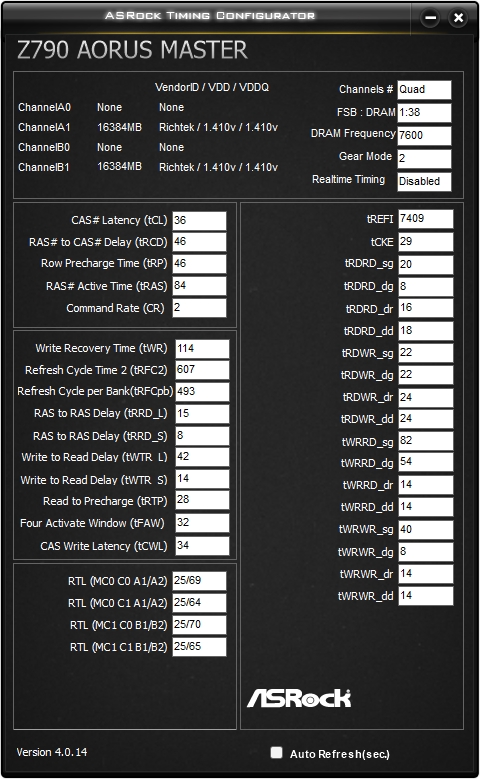 Уже заметил, что ASRock Timing Configurator не правильно отображает некоторые вторичные тайминги. Если очень надо, могу потом скрин в БИОСе сделать.