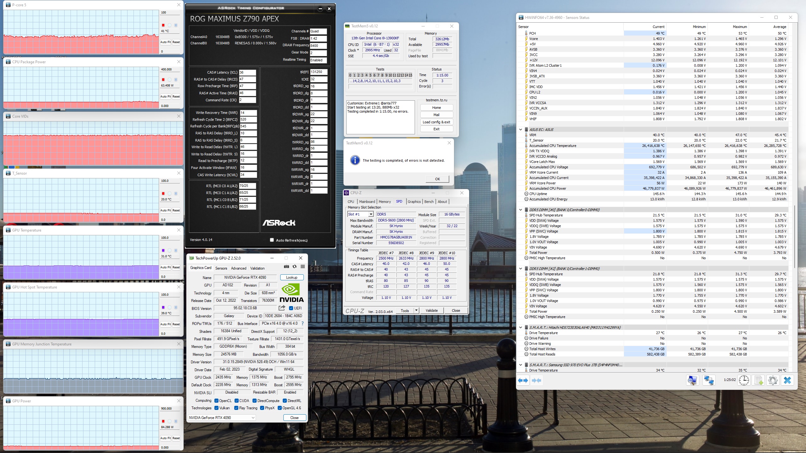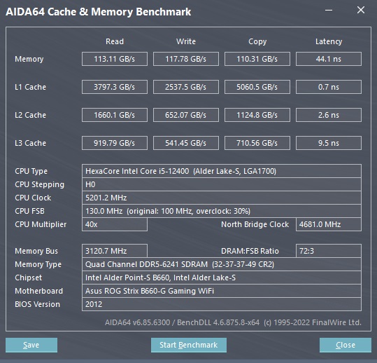 мать на Б660 + 2х16Гб А-Дата многими так не любимая (а по факту была просто чуть ли не самая дешевая) 6240МГц, 1,33V, 35* в простое, 40-45* в играх, 50-55* при тестах по памяти это еще не предел, она стартует как минимум на 6500.. но оставил это на потом, если когда-нибудь обзаведусь 12600к/13600к или будет много свободного времени
