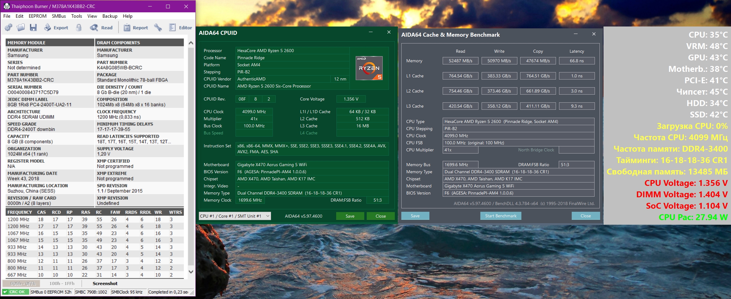 Добрый день! Подскажите пожалуйста, это нормальный результат? Память GEIL EVO X 2133, одноранг на чипах Micron. Судя по обзорам в интернете больше 3400 не гонится. У меня тоже при 3400 компьютер не стартует, тайминги и напряжение увеличивал, старта нет.