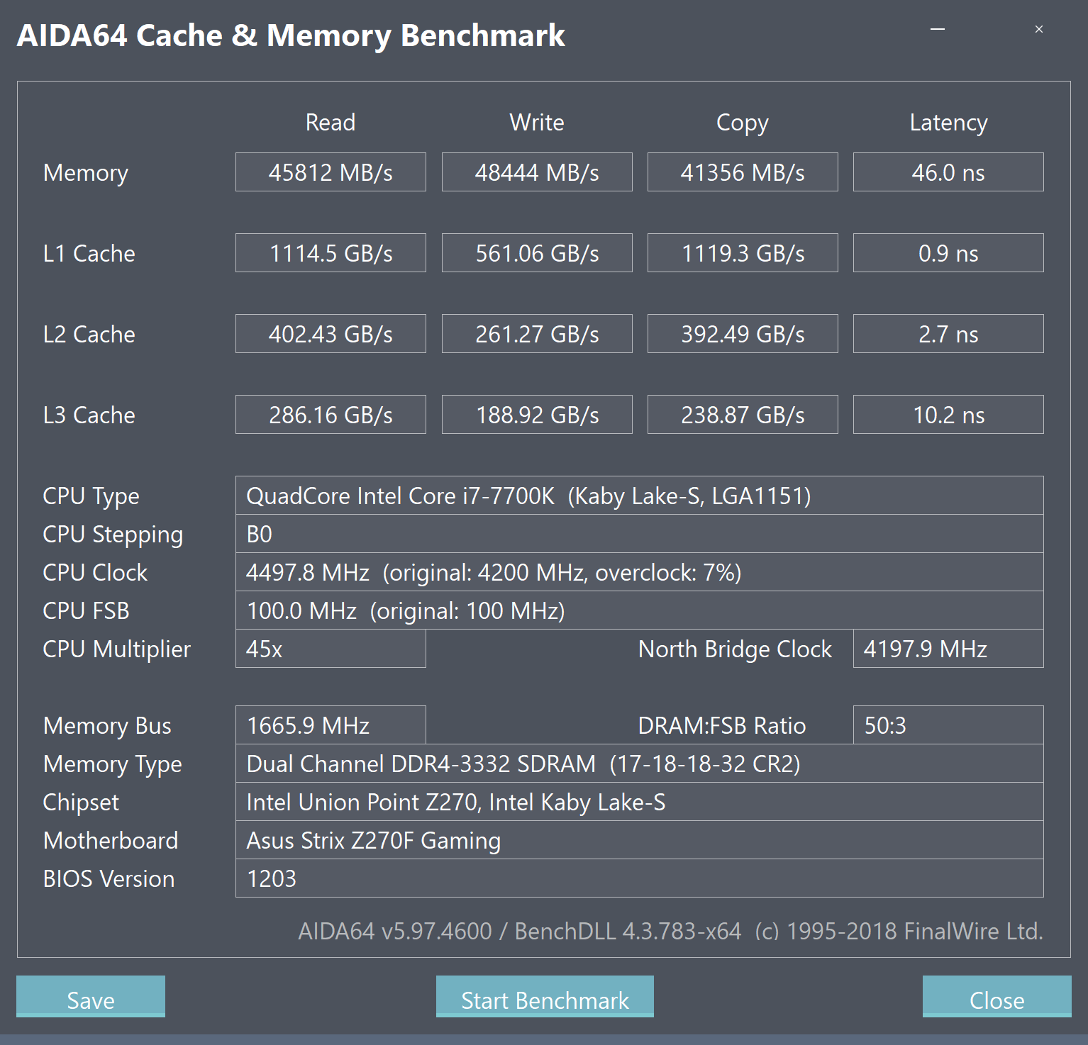 CPU Name: Intel® Core™ i7-7740K CPU @ 4.30GHz Motherboard Model: MSI X299 GAMING PRO CARBON AC (MS-7A95) Total Size: 8192 MB Type: Single Channel (64 bit) DDR4-SDRAM Frequency: 2750 MHz - Ratio 1:31 Timings: 21-31-31-63-2 (tCAS-tRC-tRP-tRAS-tCR) Slot #1 Module: G.Skill 8192 MB (DDR4-2137) - XMP 2.0 - P/N: F4-3200C14-8GVR