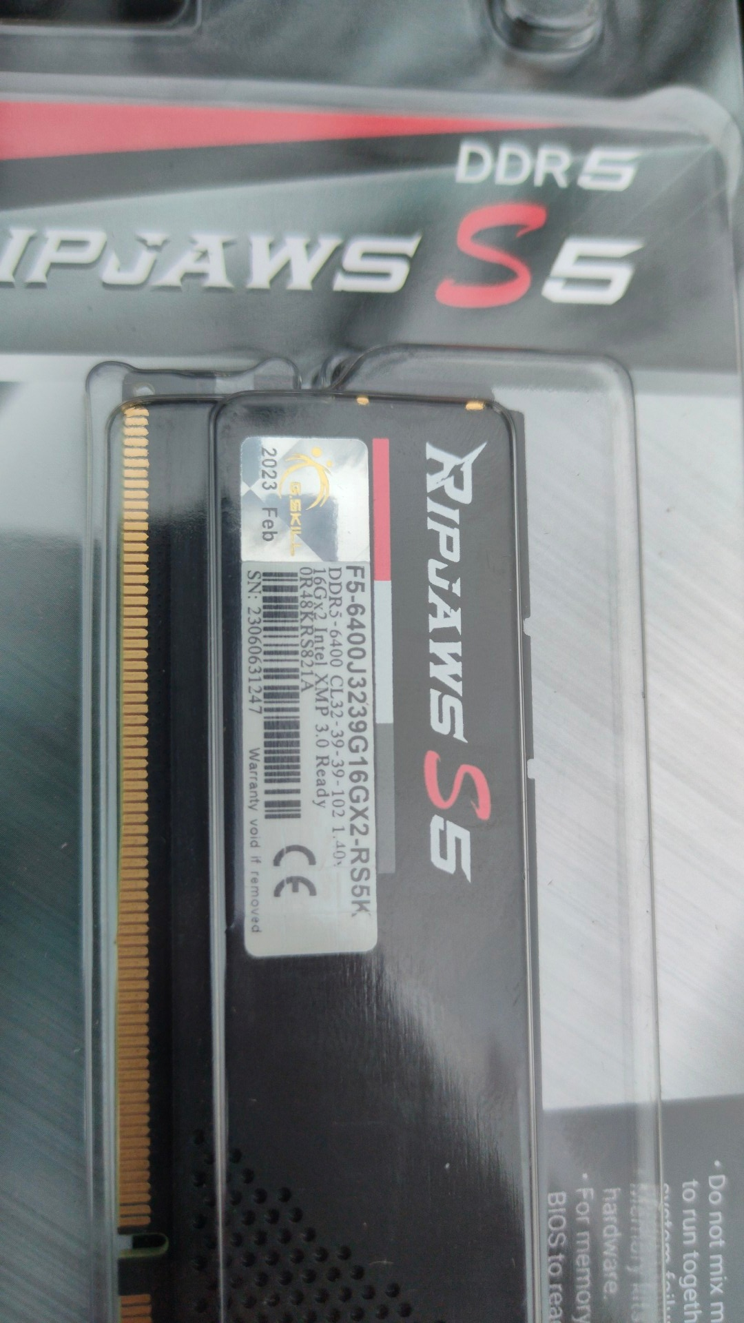 Всем привет. Может кому интересно или поможет Сегодня приехали G.SKILL RIPJAWS S5 DDR5 32Gb (2x16Gb) 6400MHz CL32 и G.SKILL RIPJAWS S5 DDR5 32Gb (2x16Gb) 6000MHz CL30. В 6000 были хуниксы мдаи в 6400 были адаи. Взял естественно 6400 + они дешевле.