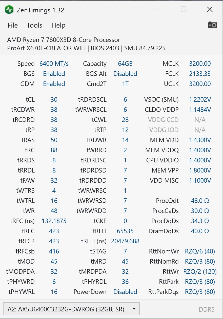 1. Geardown disable. 2. RDWR снизить до 16(14). 3. SCL снизить до 6(5). 4. Powerdown disable вместе с memory context. 5. Ваша память должна легко идти и на 6400, я бы настраивал на 6400. 6. Сделать все оптимизации в биосе.