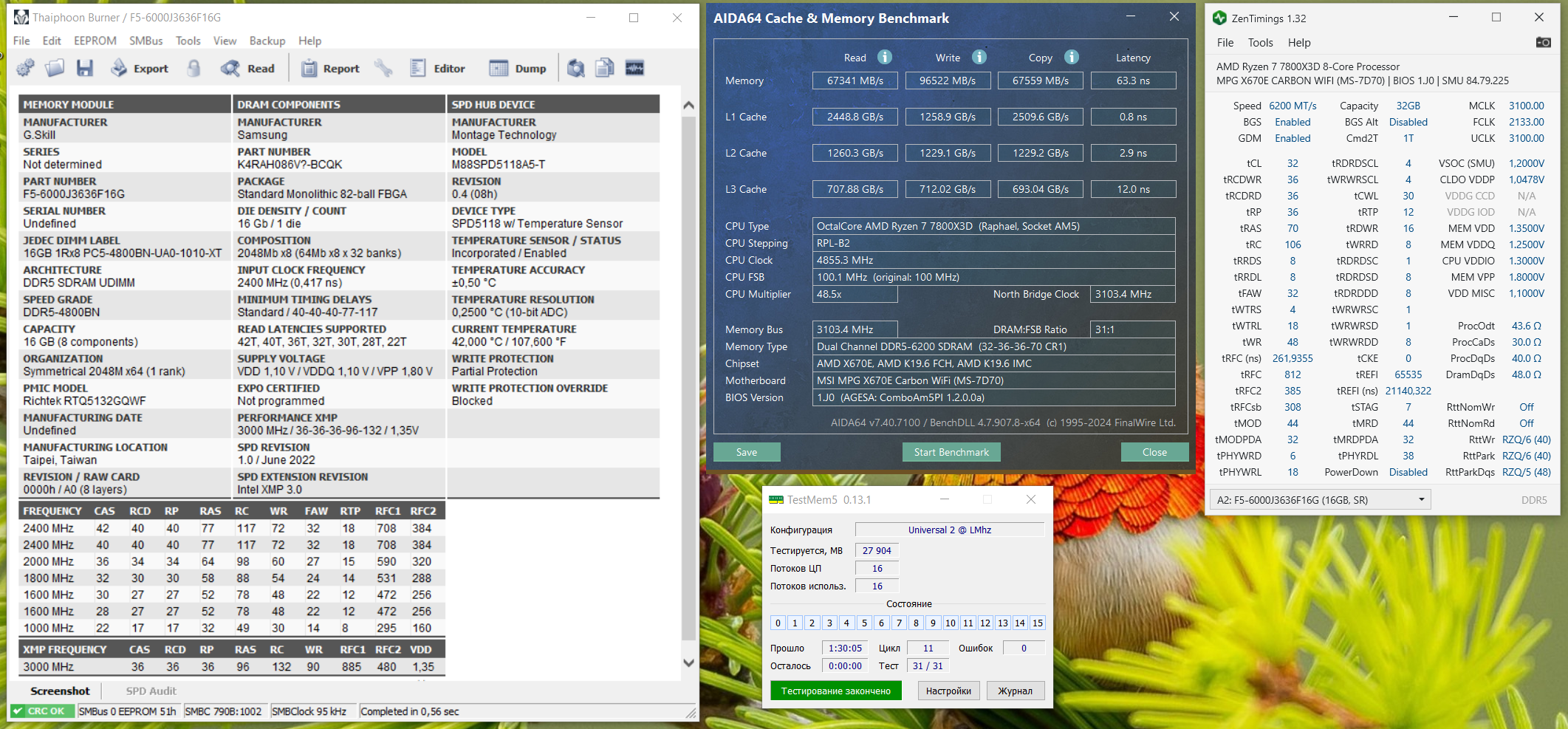 Такой конфиг выдерживает 40 минут extreme TM5, больше пока что лень. При таймингах со скрина, но с отключенным GDM система ребутится через несколько минут TM5. При тех же настройках, но на частоте 6400 - тест за пару минут выдаёт ошибку. Понижение RFC до 480 вызывает синий экран и ребут даже на 6200. Экстремально повышать напряжения не хотелось бы, система 24/7 как говорится, рендеринг, монтаж. Прошу совета, можно ли, и как выжать больше.