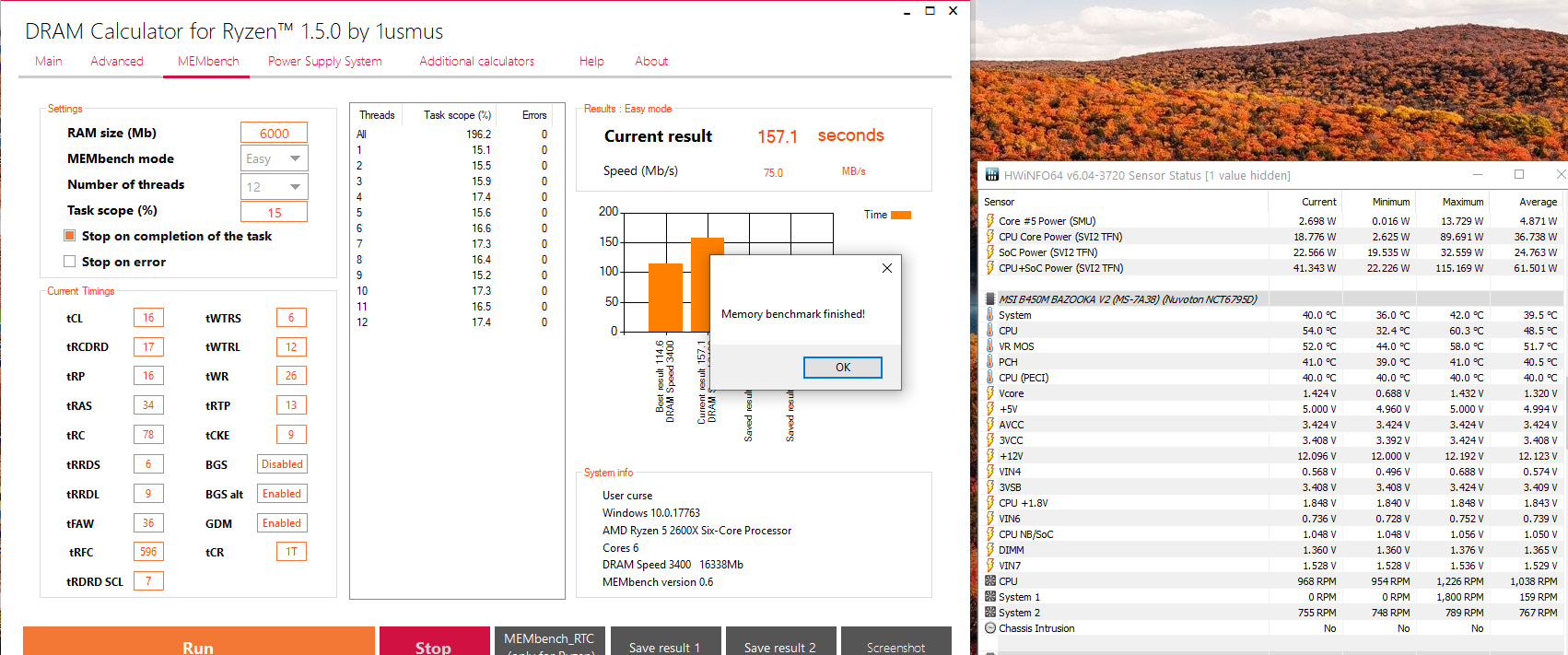 Память не очень. Хоть Тайфун и пишет samsung разгон такие танцы с бубном. Все киты по разному у людей работают. На шаг больше 1.38 напруга и всё. С обдувом хорошим до 1.41в держат. Дальше ошибки. Убил неделю на поиски нужных настрояк на мамке asus prime x470 и эта мамка в списке тех что нормально разгоняют памать. Запустил на 3600 многие тайминги подтянул до калькулятора но основные 16.20.20.20.38