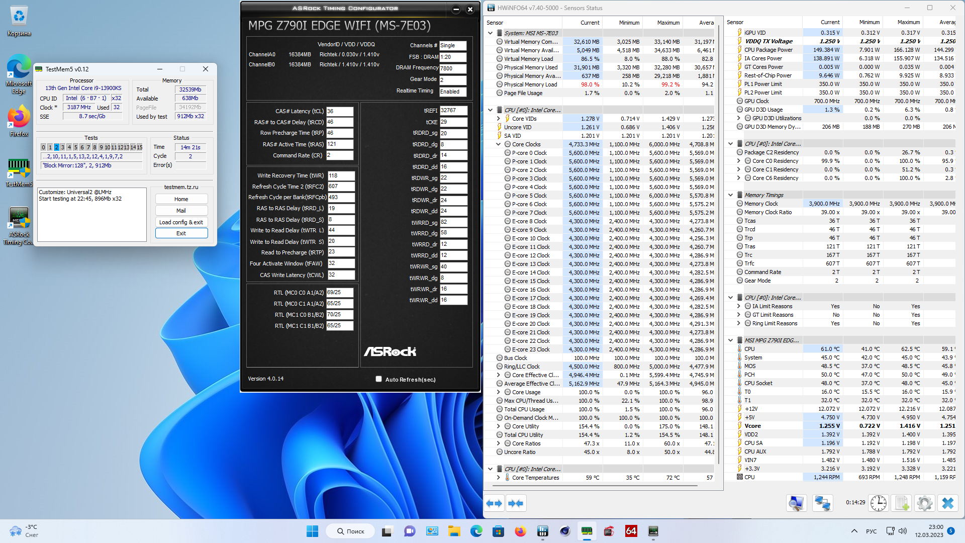 да мать или проц. Родной профиль 7800 и так расслабленный - С38 и 1,45В - это не очень-то и ужато. Вот наколенная сборка с 7600, все криво косо, потому что ХМР, но 7800С36 при 1,4В.