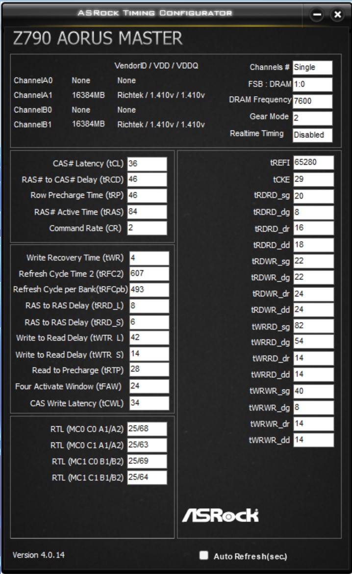дайте, пожалуйста, комментарии к таймингам, которые оттренила материнка, Z790 Aorus Master после включения High Bandwidth и Low latency (AsrockTC неправильно показывает tWR, в BIOS он равен 8