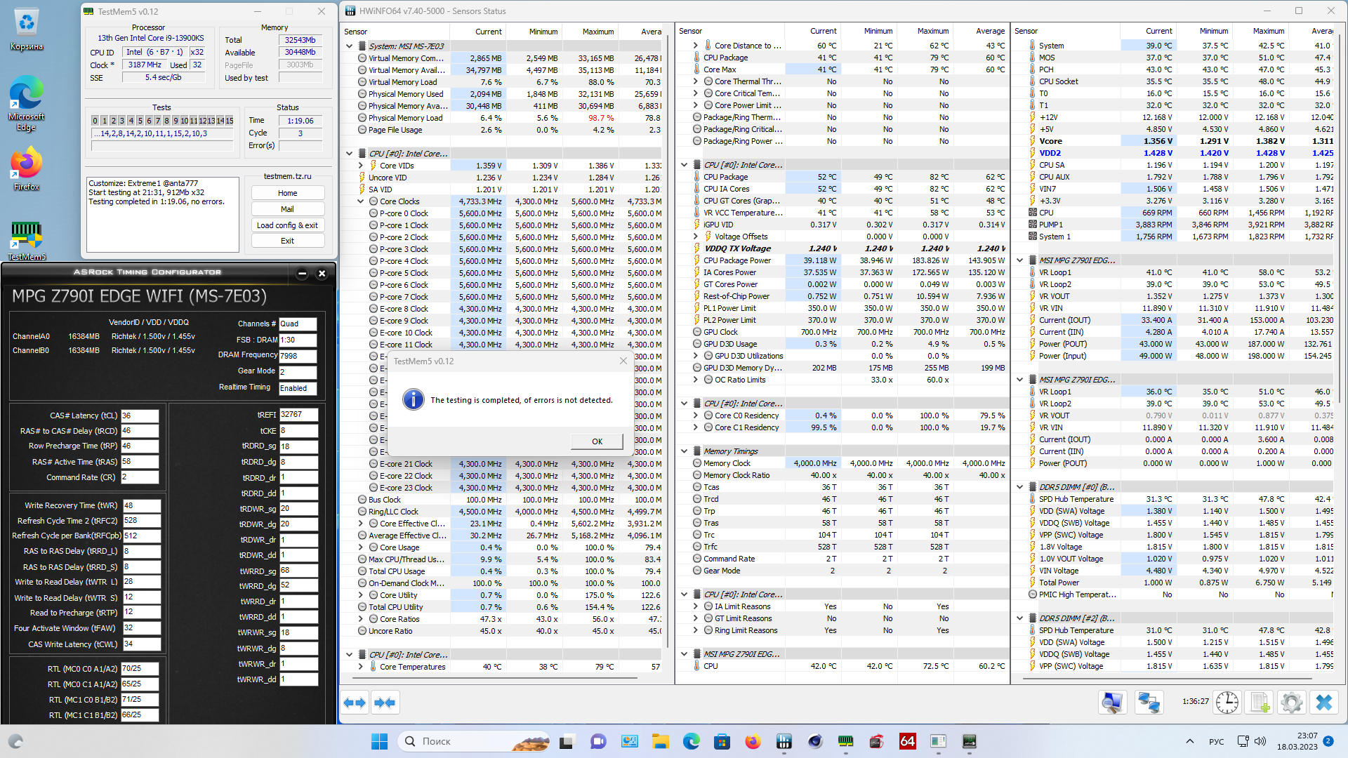 короче это предельная частота на данной материнке с этим процом - я такими подборами на ЕЖЕ выжал 6666, только ручной подбор VDD2-VDD TX-SA именно в комбинации. Сейчас 6 часов провозился так с подбором SA\TX для стабилизации 36-46-46 (работает только 36-47-47) и попутно проверял ОДТ комбинации -максимум 15 минут экстрима При этом есть рабочая комбинация 40-120-240-48-48 с ней проходит экстрим, а в авто через час ошибки. Лучше бы в хогвардс играл, но пойду проверю эти finetune