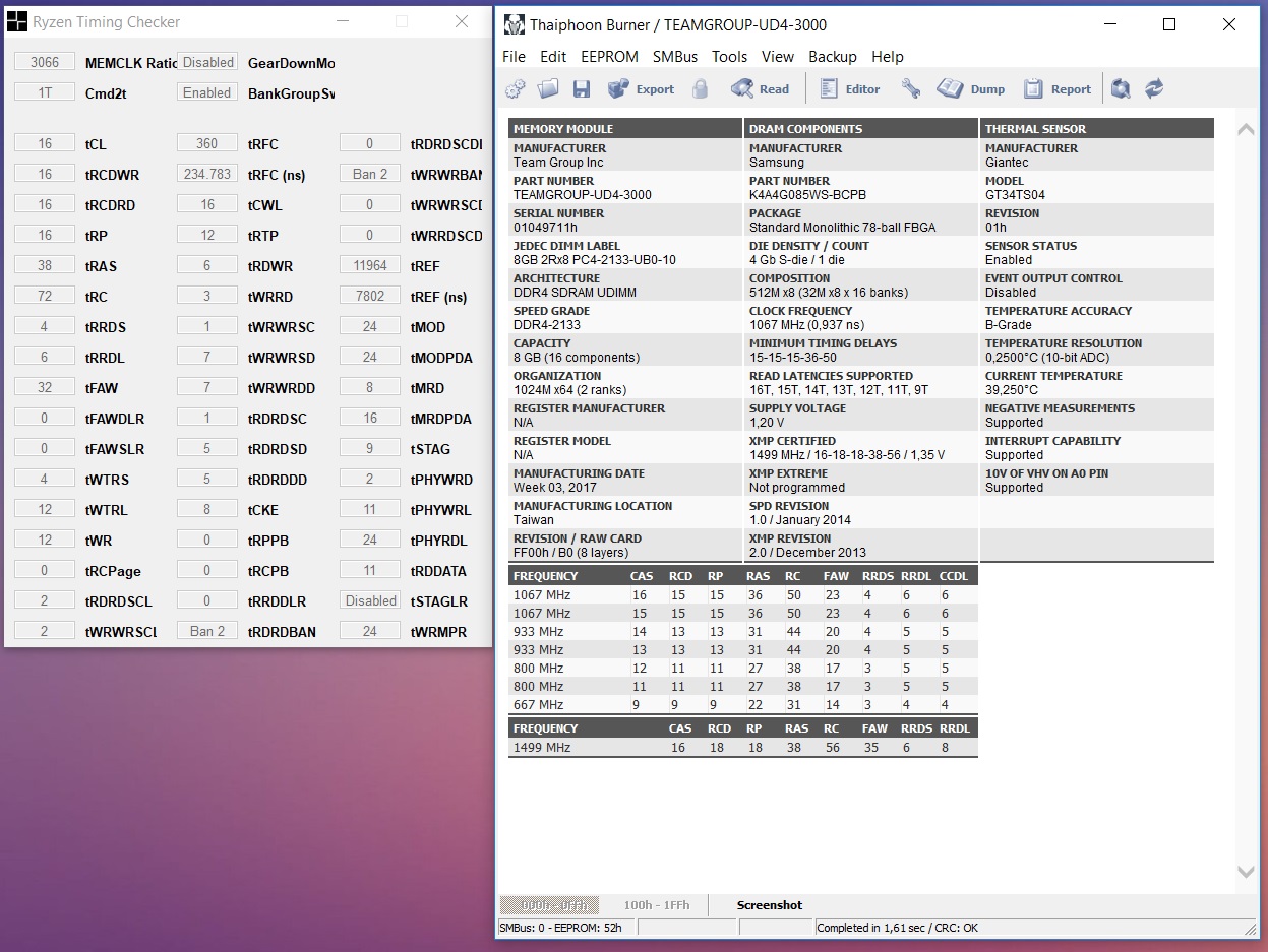 Для вариантов 2x8 Gb так же можно рассмотреть варианты покупки: - Patriot Viper Steel 4000 и 4400 Мгц (маркировка PVS416G400C9K и PVS416G440C9K), Patriot Viper RGB 4000 Мгц (маркировка PVR416G400C9K). XMP профиль в этих комплектах должен быть именно 19-19-19-39. - Team Group T-Force XTREEM с XMP 4000, 4133, 4300 и 4500 Мгц (маркировка начинается с TXKD416G4, в РФ только на Авито, либо заказывать с США). На авито брать можно модули с датой производства от 2019 года (дата у G.SKILL Trident Z указана на голограмме на каждой планке "2020 sep" - сентябрь 2020 года). Брать старый B-die за цену Яндексмаркета не советую. Перед покупкой нужно зайти на сайт Бидайфаиндер и удостовериться, что в рассматриваемых модулях действительно B-die: B-Die Finder, так же можно проверить модули по маркировке на hardwareluxx.de. Частота памяти 4000 Мгц и даже 4600 Мгц не является гарантом того, что чипы окажутся именно B-die, уже давно выпускаются модули 4400 Мгц и выше с чипами hynix D-die (например Thermaltake TOUGHRAM ROO9D408GX2-4600C19A, брать их не стоит). Так же косвенным фактором наличия чипов B-die являются тайминги tRCD и tRP - у B-die они отличаются на +1 (редко +2) или равны tCL, например 14-14-14-34, 15-16-16-36 или 17-18-18-38. Если вы видите память 16-19-19-38, то это скорее всего не то, что вы ищите (например тот же Thermaltake TOUGHRAM 4600 Мгц 19-26-26-45). Сейчас на рынке представлены комплекты памяти с чипами Samsung B-die на примере G.SKILL F4-4000C16D-32GTZR с таймингами по XMP 16-19-19-39 и напряжением 1.40V, но покупать такое и рассчитывать на разгон памяти без "отвала tRCD" к примеру 16-16-16 или 16-17-17 я бы не стал. В пример могу привести комплект G.SKILL F4-4600C18D-16GTZR с XMP 18-22-22-42, который на заявленной часте в разгоне работал только с tRCD = 20.