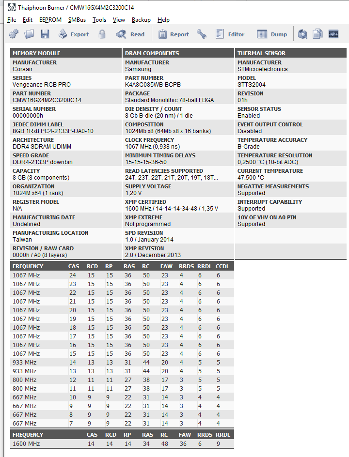 [img]Ссылка на скрин[/img] Для сбора статистики по установленным чипам памяти просьба прикладывать скрины программы Taiphoon Burner и указывать напряжения на DIMM, IO и SA![/color]