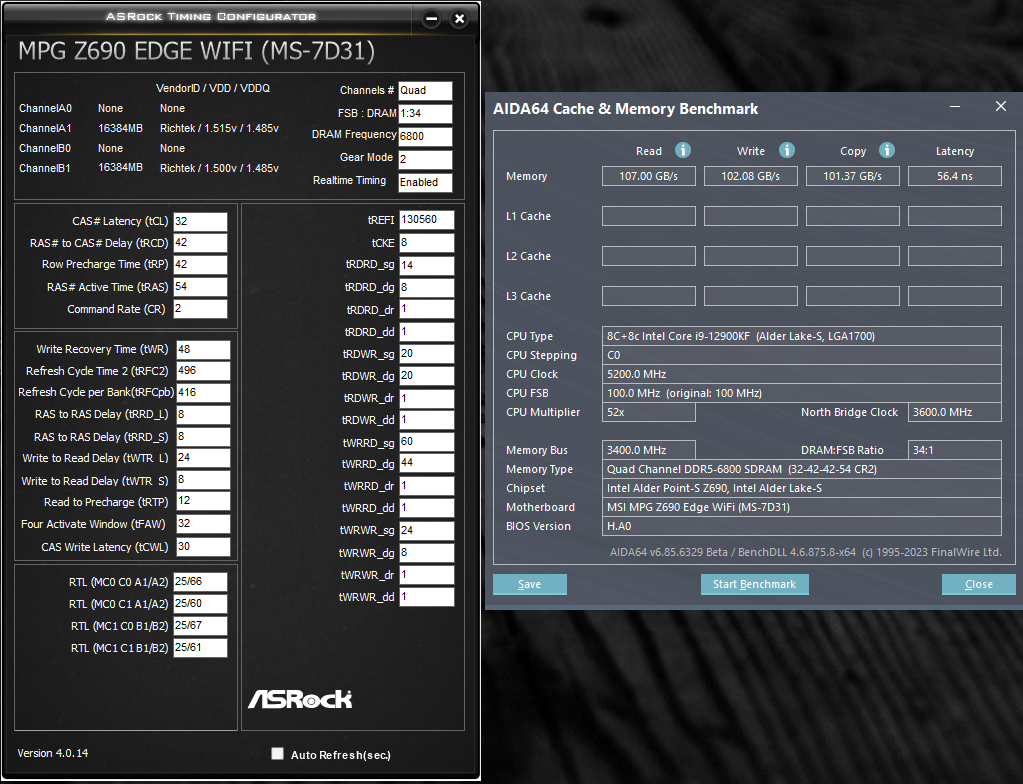 Такая же плата и проц, но m-die. На а-даях trfc/pb надо выше, напряжения на память ниже. Tras надо trcd(trp)+trtp(чаще всего 12). Также не забыть выставить trdpre тоже 12. Эта плата вряд ли выше 7000 поедет, даже 7000 под большим вопросом. У меня максимум получилось 6800 32-40-40-52 на тех же напряжениях. Но а-даи может и поедут. Но вряд ли. А может и да)) Но скорее всего нет