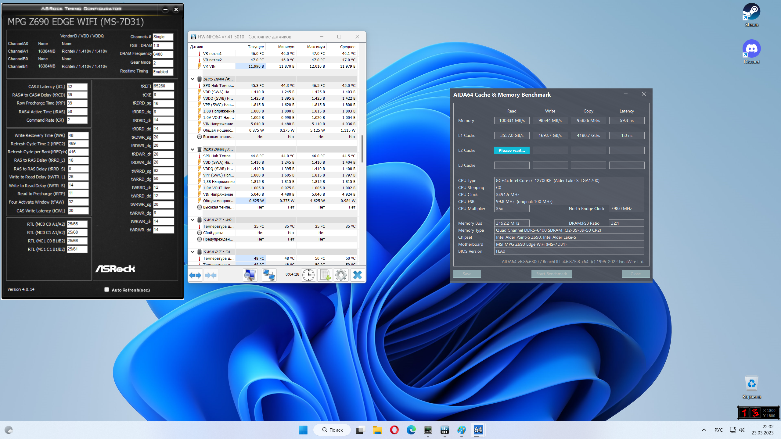 Вот что получилась за вечер с 6400. подужал тайминги. Посоветуйте, что еще подкрутить, и посоветуйте какой tREFI поставить лучше? из гайда не совсем понял как выбирать