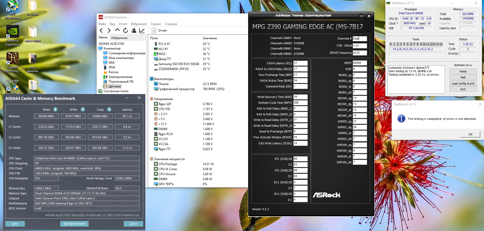 До этого система проходила ТМ5 без проблем, решил проверить первый раз профиль экстрим к 25 минуте уже 3 ошибки, пришлось повысить пару значений, в аиде скорость упала но не критично, память Patriot Viper RGB 3600 MHz.