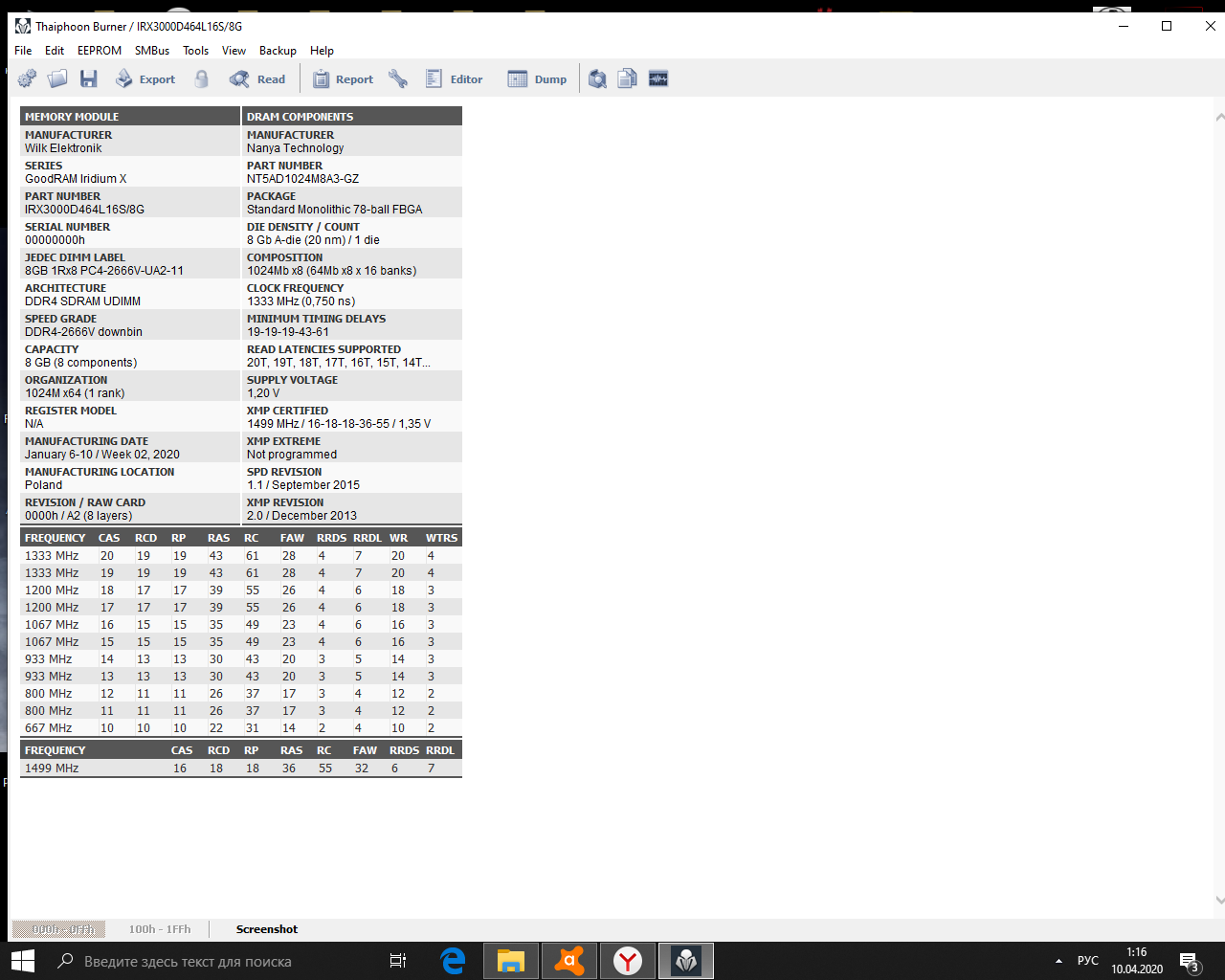 По частоте - хороший результат, выше среднего. А вот по таймингам - ниочень, что видно по скорости копирования. У дуалов она равна чтению и запаси. Задержка тоже высокая, у меня такая же при 3266. Можно намного лучше сделать, тем более тебе повезло что у тебя rcdrd смогло в 10нс.
