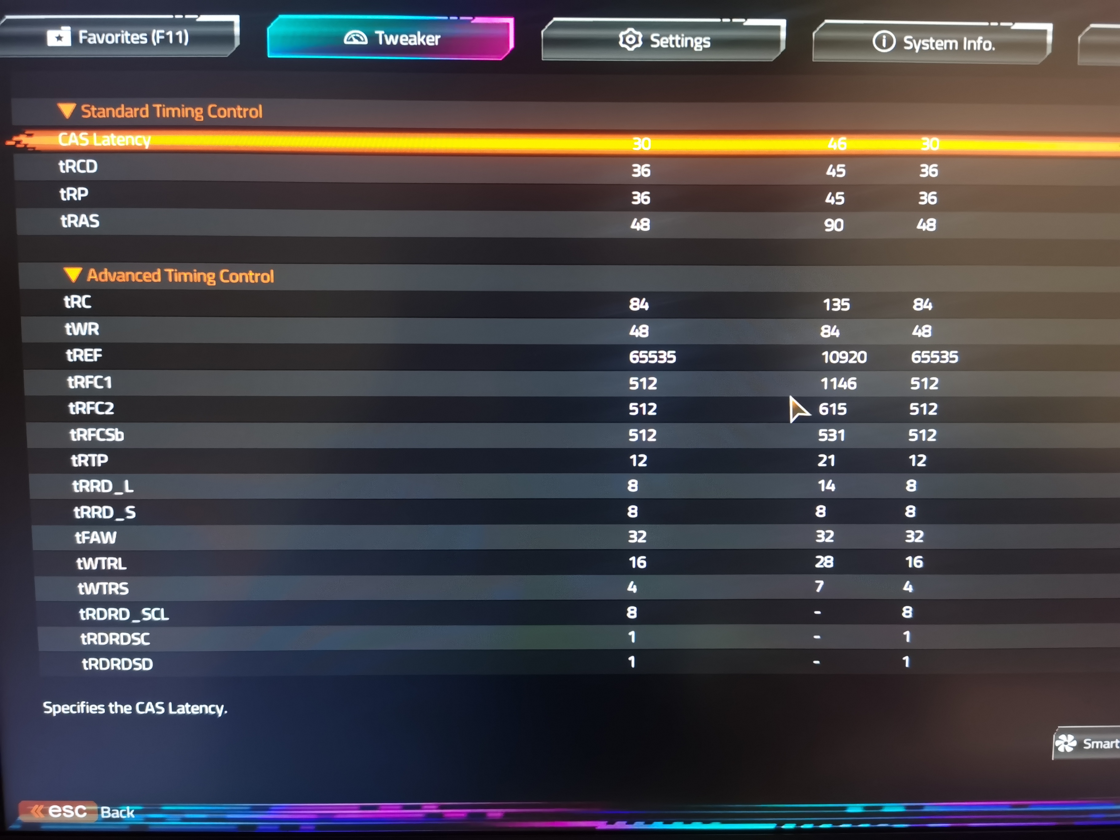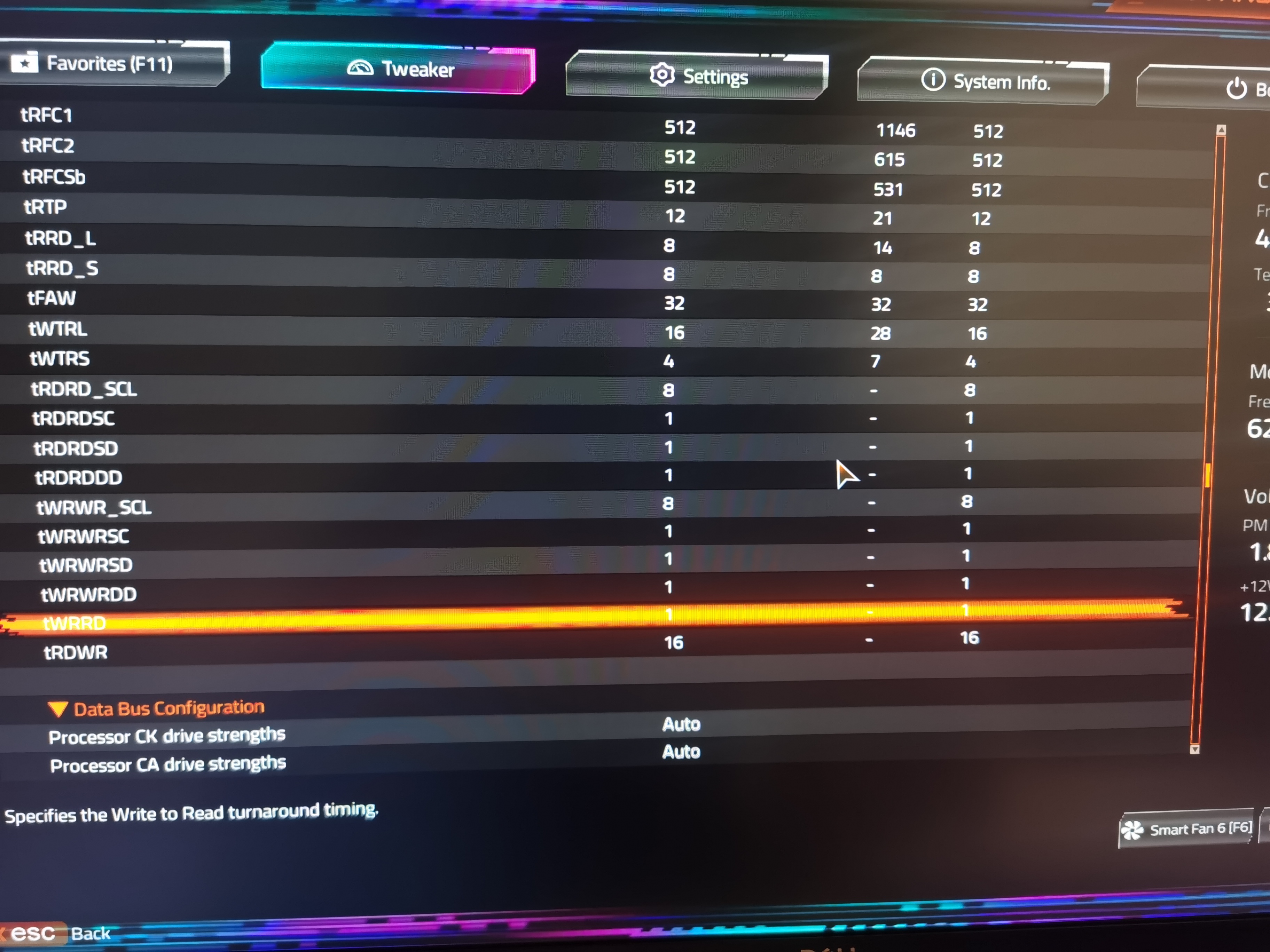 trefi 65535, trfc поджать (вроде 130нс адай, 160 для мдай) rfc=trfc2=trfcsb=400 (550) и GDM off. Ну и остальные тайминги по типовым для 6000 выставить (tRC=RAS+RP=84, rdrdscl=wrwrscl=8...), вроде в шапке темы есть и скриншотов тут много выкладывали.