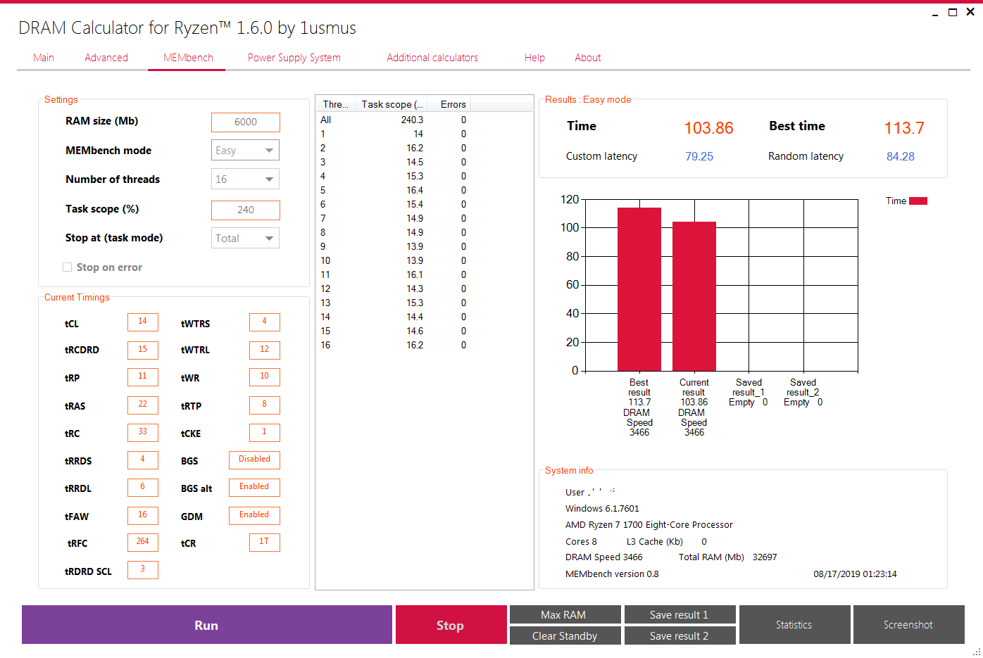 вобщем потратил еще один вечер... перепробовал все вольтажи... от 1.025 (на котором система не стартанула с B1 кодом) на SoC до 1.13. По памяти тоже.. от 1.395 до 1.44. Все параметры kHz крутил от 300 до 500 в разных вариациях. Переключал решим с Extreme а Redular и тд. Ошибки начинались в разное время и в разном кол-ве. Бывало и через 15 секунд, а бывало и через 15 минут. Минимальное кол-во было 6. Максимальное - зависание с черным экраном и гордой "8" в Post кодах. В итоге психанул и впулил 1.45 на память... получилось так: