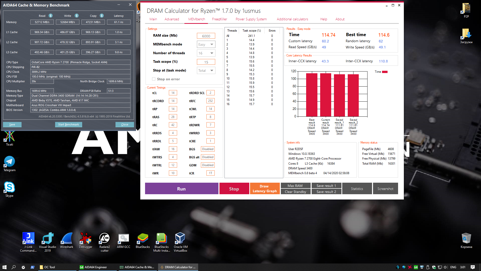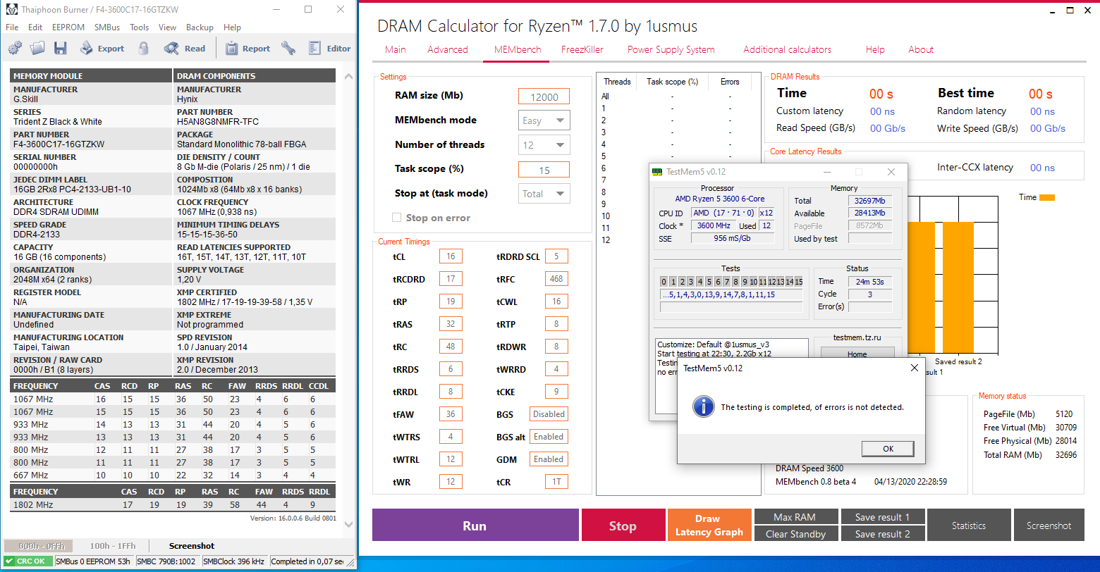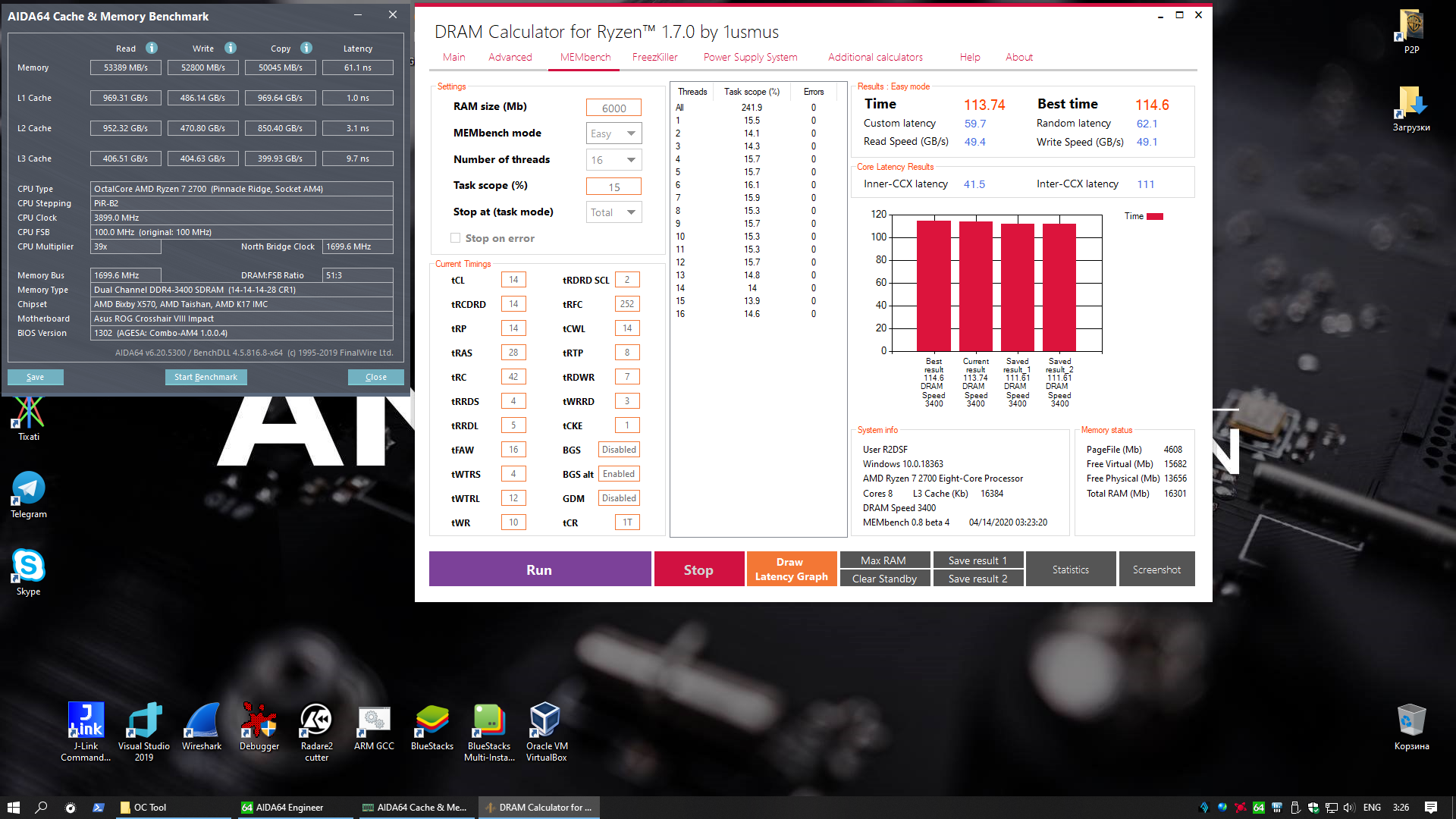Приветствую. Есть желание немного дожать ОЗУ (Crucial 2x16GB 3200 BLS2K16G4D32AESB+ X570-F) система профильная На данный момент такие резульнаты при напруге Авто и частоте 3600.