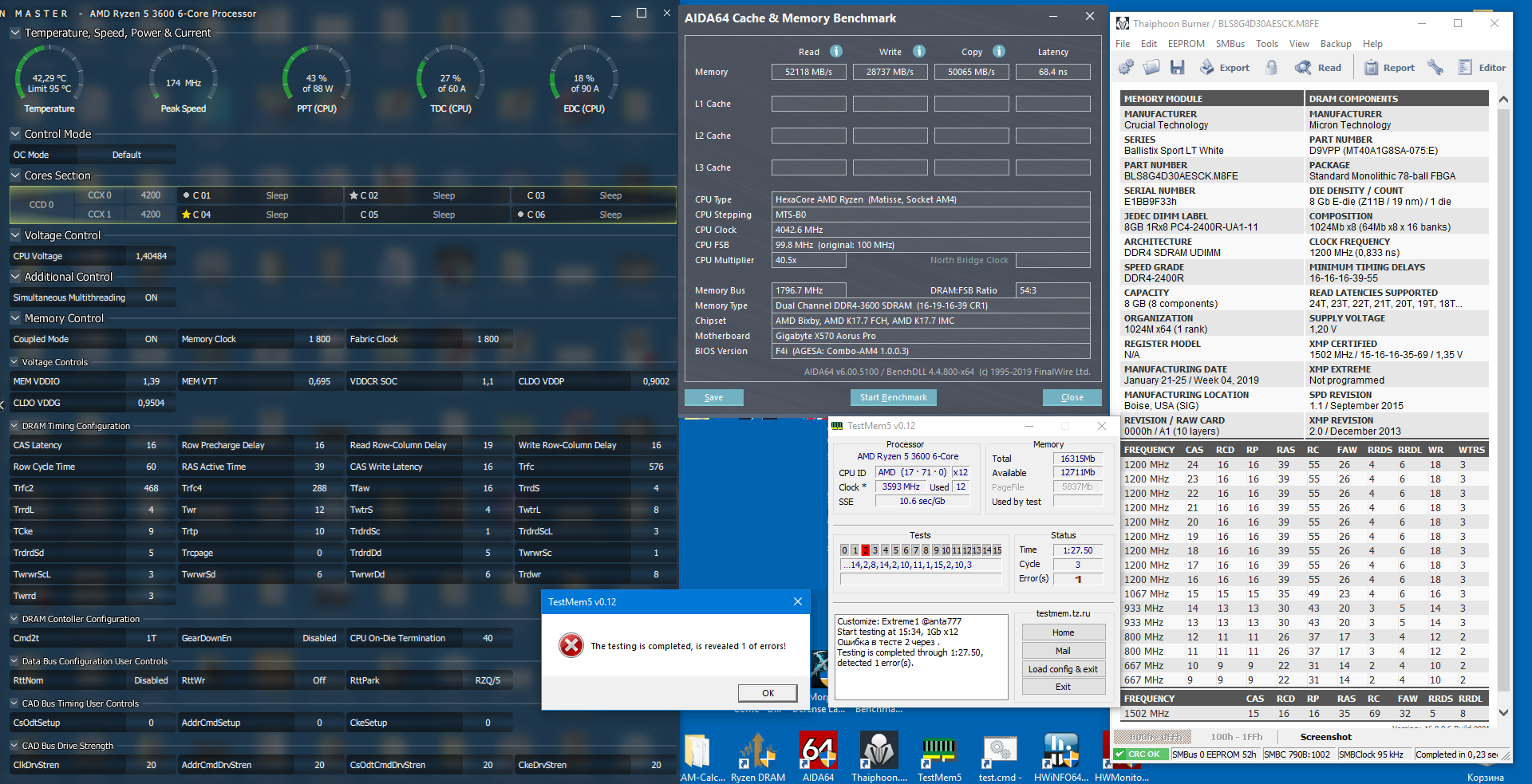 Добрый вечер. Не могу пройти ТМ5 ни на одном из пресетов калькулятора, что у меня может быть не так? Обычно перестает работать сразу как только я выключаю geardown, но и с ним проскакивают ошибки примерно на втором-третьем часу мемтестхелпера (14гб).