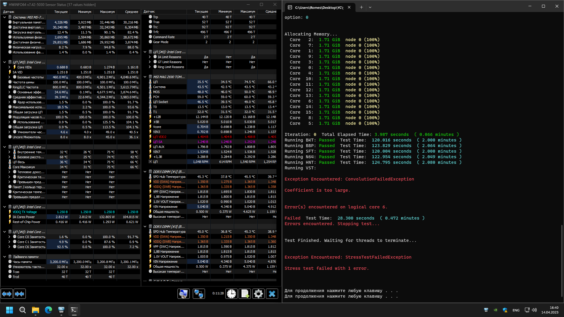 MurkLyaMurk Не, помимо кранчера. ТМ5 экстрим? Карху? Еще что-то только на память. Возможно, просто недостаток напряжений на памяти или не подобраны тх/вдд2 - это самое простое.