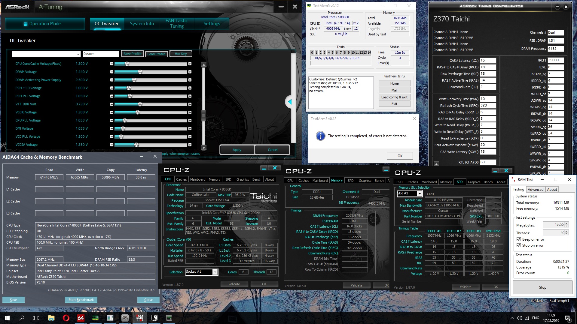 Здравствуйте, у кого нибудь есть опыт разгона оперативной памяти Samsung 8GB DDR4 PC4-19200 M378A1K43CB2-CRC на матери Z370 GAMING M5? До 3200 разгон норм, выше конские тайминги,танцы с бубном, сыпятся ошибки. Пресеты матери вообще не загружает, или чипы попались неудачные, или эта память больше не может В том то и дело кручу верчу вторичные тайминги, чего смог добиться без ошибок 3200/ 17 19 19 39 560 2t, 1.360, SA/IO 1.168, 1.112. Выше с поднятием напряжения, SA/IO, таймингами, сыпет ошибками и да слоты A2B2, планки менял местами. Тем более это c-die, видимо немного хуже б-диешек в плане разгона, может действительно сыроватые пока плашки и надо ждать гайд. Читал у людей на райзенах она заводится получше, с меньшими таймингами, напряжением и частота повыше берется.
