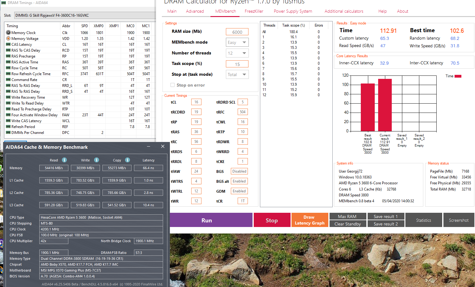 Привет еще раз всем, вот еще раз поиграл с цифрами и получилось запуститься на 3800 сL 16-19-19-36 Подскажите у меня все нормально или нужно еще что-то подкрутить ? Память двухранговая hynix m-die