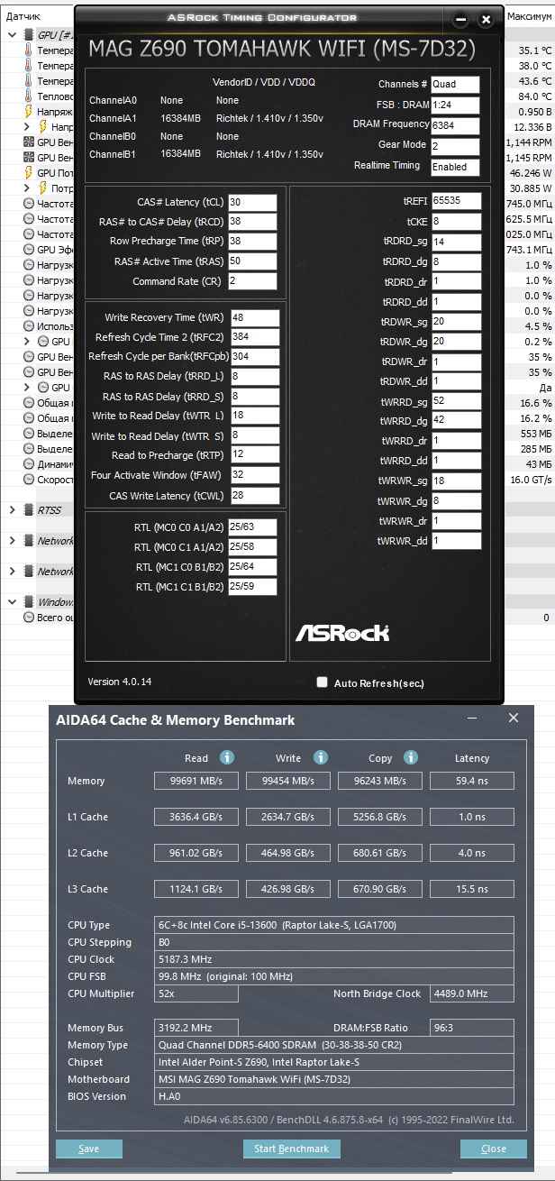 Ниже профиль на 6400 CL 30 с ужатыми таймингами (знаю, забыл зафиксировать tRDPRE на 12, поэтому на скрине tRTP съехал на 11). #77