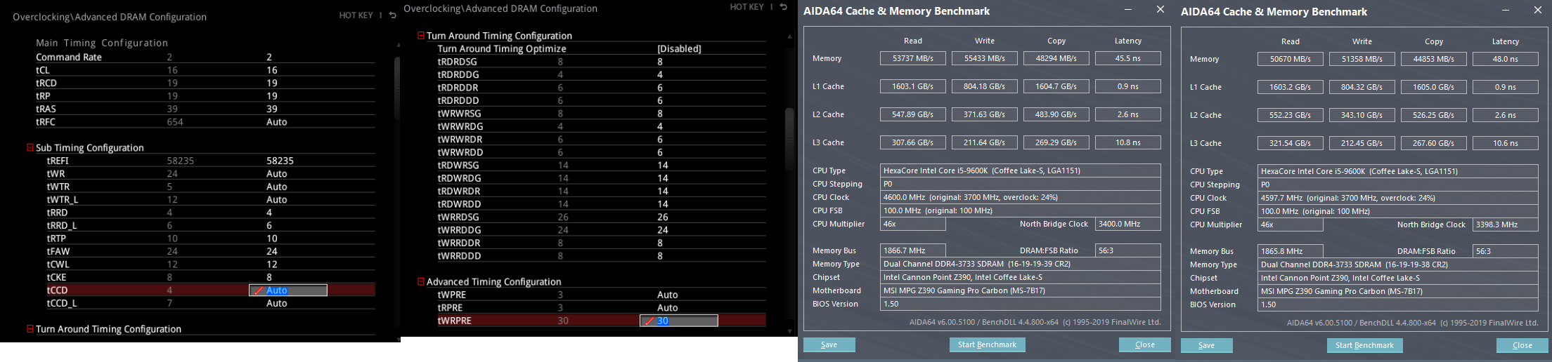 Тут интересный момент, если ставлю в авто, то биос ставит где-то 14000, что сильно меньше табличных 58235, поэтому оставил (наслышан, что ставят вообще под 65000). Т.е. осталось поменять tWRPRE=36, tWR=20, а остальное нормальные значения?
