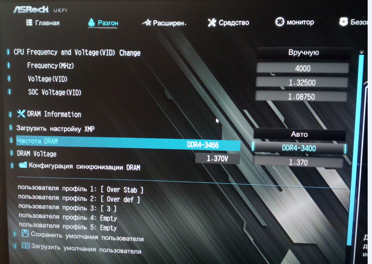 2. Не используем XMP профили, это как правило, настройки для систем на базе Intel, за очень редким исключением, соответственно режим XMP протестирован на совместимость именно для Intel, к тому же, заводская настройка не блещет идеальным подбором таймингов и напряжений и можно получить примерно до 20-30% производительности дополнительно, вручную настраивая тайминги и напряжения. Также использование профиля XMP, чревато завышенным вольтажом на контроллер памяти.