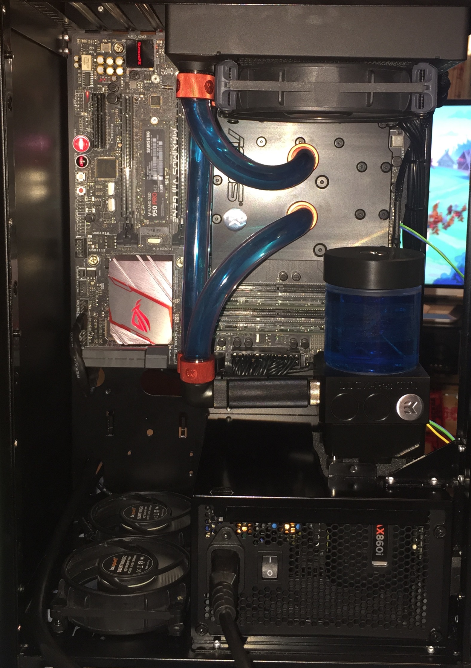 Охлаждение Чем сильнее разогнана память (и соответственно работает на бОльшем вольтаже), тем больше тепла она выделяет во время работы. Для частоты свыше 4200 Мгц скорее всего потребуется установка дополнительного воздушного или водяного охлаждения на память. Варианты: 1. Покупаем обычный вентилятор от 90 мм и крепим его в корпусе, что бы он обдувал непосредственно саму память. Закрепить можно обычными пластиковыми хомутами или купить специальное крепление на алиэкспресс Фото 1Фото 2 2. Покупаем специальный модуль для охлаждения например CORSAIR Airflow 2, встретить в магазинах практически не возможно, искать нужно на вторичном рынке Фото 1Фото 2 3. Для водяного охлаждения существуют комплекты EK-RAM Monarch Фото 1Фото 2 и Barrowch FBRWB-PA-V2 Фото 1Фото 2. Этот вариант только для энтузиастов т.к во первых нужно иметь в компьютере кастомное СВО, а второе это необходимость снятия существующих радиаторов с помощью термофена, что чревато повреждением чипов памяти Фото 4. Экстремальное охлаждение с применением специальных емкостей для жидкого азота (например Bitspower Universal Memory LN2 Container). Фото как это выглядит ТУТ и ТУТ. Почитать о таком чуде можно ТУТ Также в модулях некоторых производителей существуют встроенные в модули температурные датчики. Особого значения для простого пользователя не имеет, но достаточно полезная фича при разгоне, дабы контролировать «температурный предел» памяти и не получать кучу ошибок при её перегреве. Для исключения дополнительного нагрева памяти на модулях G.SKILL Trident Z необходимо отключить RGB подсветку с помощью утилиты G.SKILL Trident Z Lighting Control. Так же можно снять пластиковые накладки сверху, как это сделать смотрите на видео.