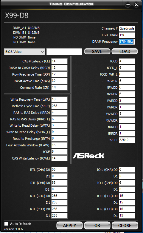 1. читается из SPD, я так понимаю не в авто ? + каким макаром, тогда считается на китае, ну и заводится соотв, DDR3@2133 при плашках имеющих в SPD 1600мах? + не мешай китай с 0, с 0 на Асусе. 2. То то я смотрю ты выставил не учитывая зависимость 2хtRTP=tWR 3. если одна планка не работает на нужных таймингах - попробуй её перемещать по слотам, а так как у тебя двуканал, так можно располагать: 2слева от проца или 2 справа, по обе стороны от проца в первые основные или во вторые основные. 4. предел то 32767, но ставить желательно 32512.