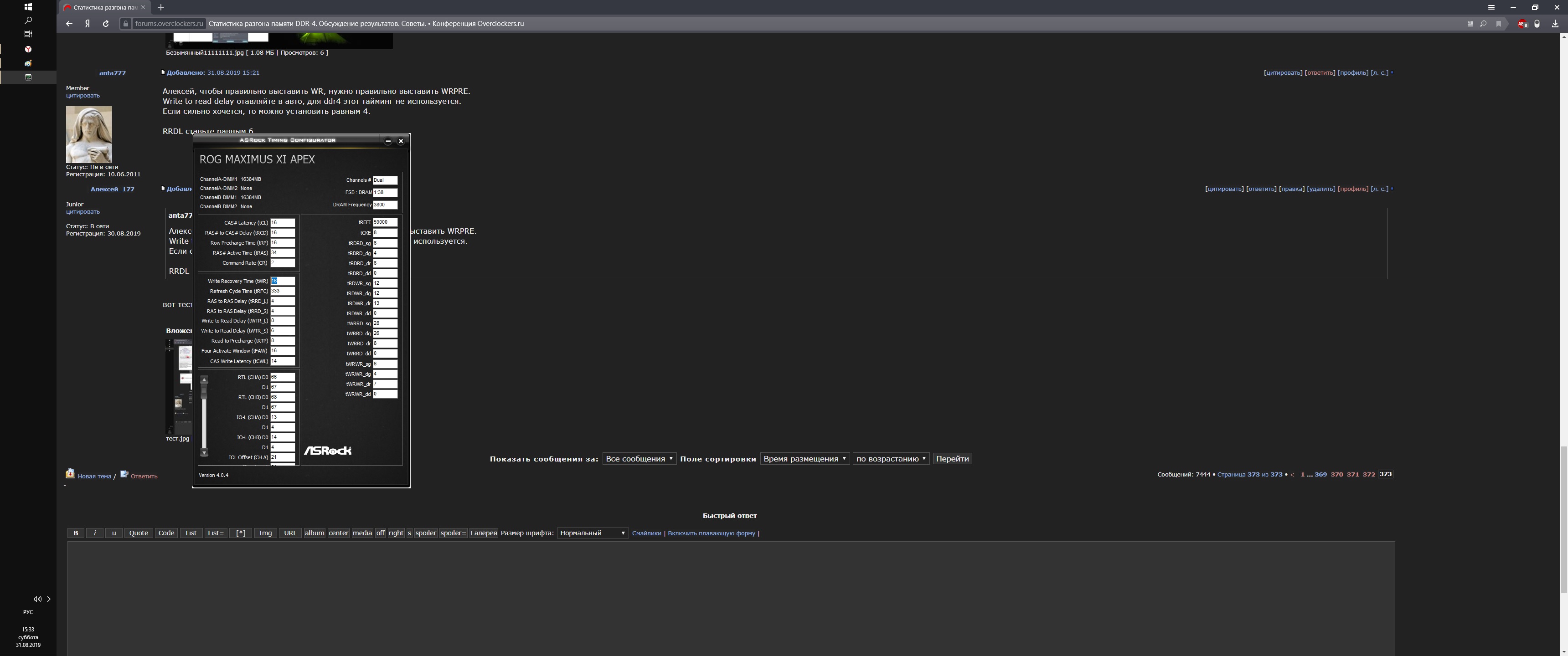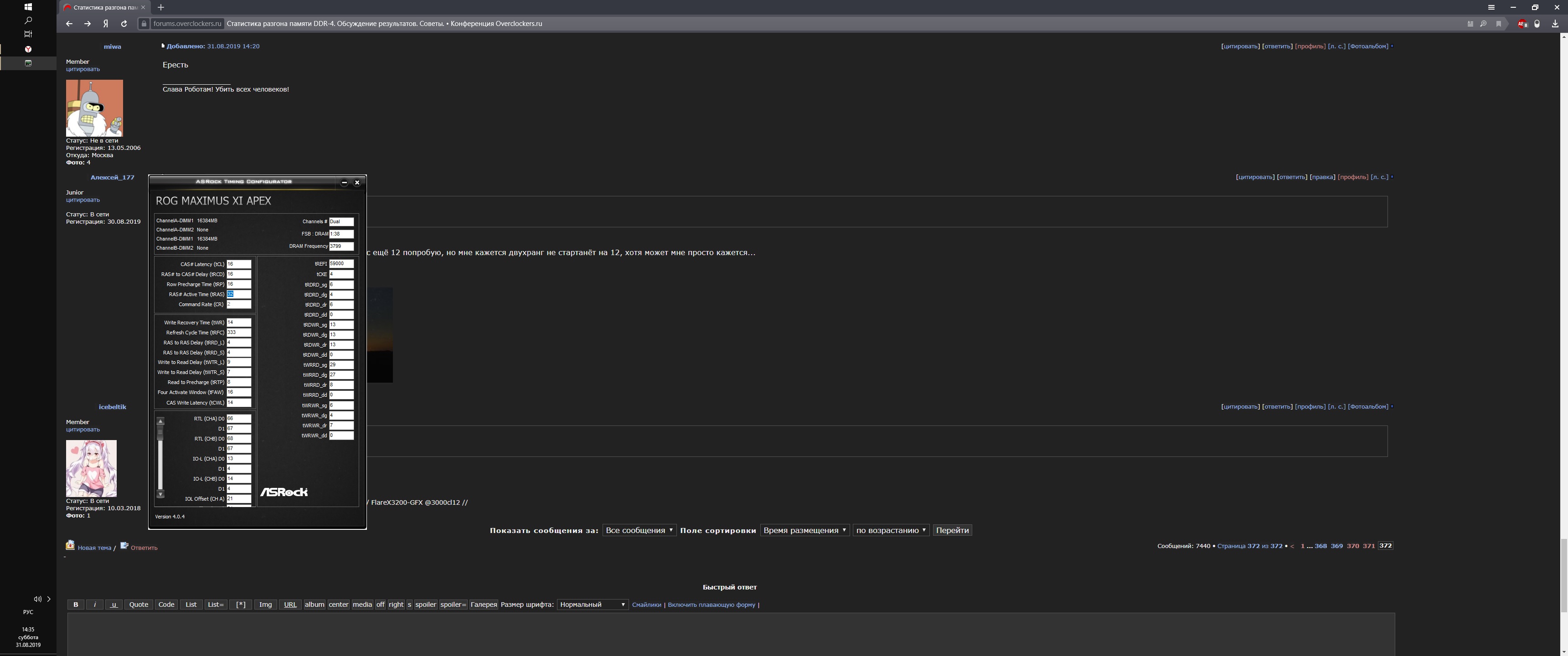 Универсальный гайд. 0. Устраните любые потенциальные проблемы с другим железом. Снимите разгон с видеокарты, снизьте частоту цп на 300 с сохранением напряжения. Не забудьте вернуть RTL в авто если сейчас не авто. 1. Крутим очень короткий мемтест, то есть если минуту живёт сразу снижать тайминг дальше. Ищите не стабильность, а явно сбойное значение тайминга, запишите его - пригодится. Гораздо проще найти явно нерабочее значение и от него плясать чем пытаться ловить нестабильность часами. Это также помогает диагностировать сбойные тайминги на ранее "стабильной памяти". Не пытайтесь найти предельные значение сразу. Сначала скрутите до +2 от минимально стабильного. Многие тайминги идут параллельно поэтому бессмысленно пытаться скрутить до упора с первого прохода. CR выставить на 2 если стоит 1. В самом конце можно попробовать скинуть до 1. 3 Ставить только на очень большую частоту или если по другому ну совсем никак.
