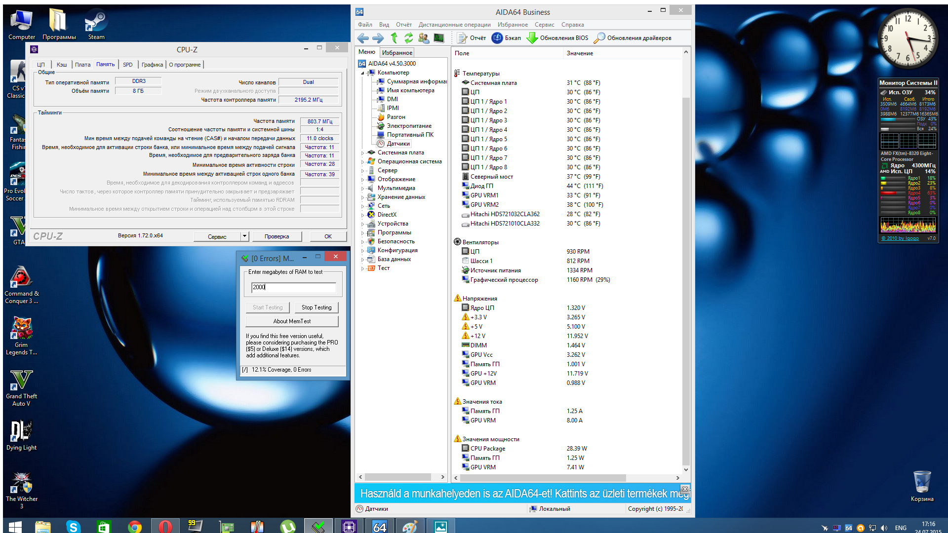 Системная плата MSI H97 PC Mate (MS-7850) Процессор QuadCore Intel Core i5-4430, 3200 MHz (32 x 100) И по одной планке 4 Гб ОЗУ Ну я так на всякий случай, потому что выходные идут, вдруг вам что-то надо, а на работу не очень хочется ехать) На моем домашнем: мат. плата Gigabyte GA-970A-DS3P процессор АМД 8320 (4.3 Гц) Обычное пользование компом- там интернет, фильмы все хорошо, стоит запустить игры, все, начинается вылеты, зависания и на рабочий стол. За сутки до этого думал, что отвал чипа на моей 290 референс от гигабайта, потому что даже драйвера переставали отвечать+ вылеты. В другой теме нашли проблему- новая ОЗУ) Вот теперь к вам)