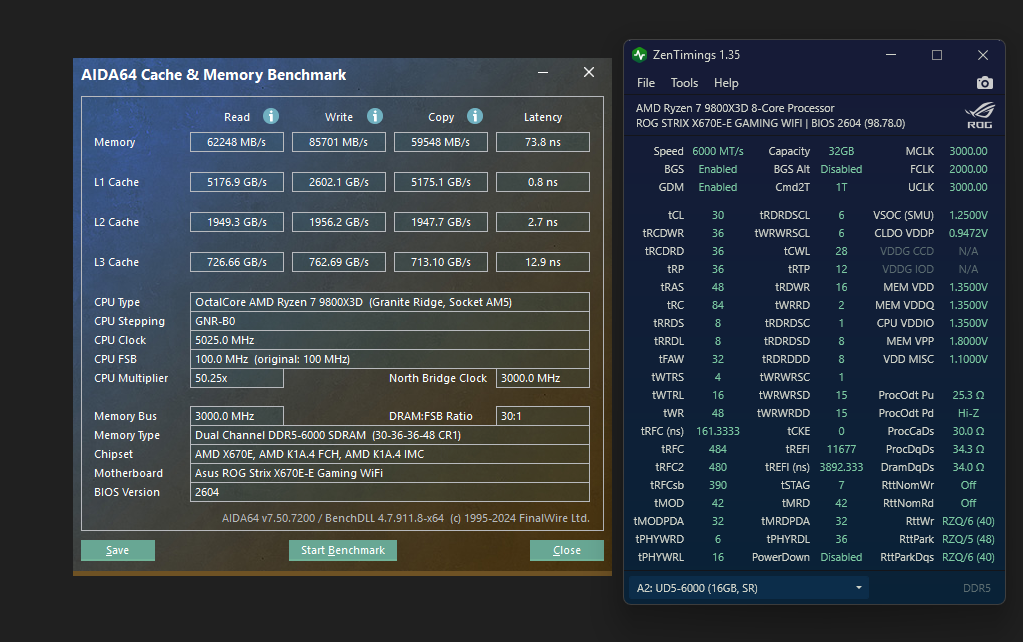 STAJIEVAR У меня так настроено на 6200, на 6000 было бы тоже самое, только 30-36-36-48 trc 84. Для 6000 fclk 2000 надо, скорее всего вся нестабильность из-за того, что 2200 выставил.