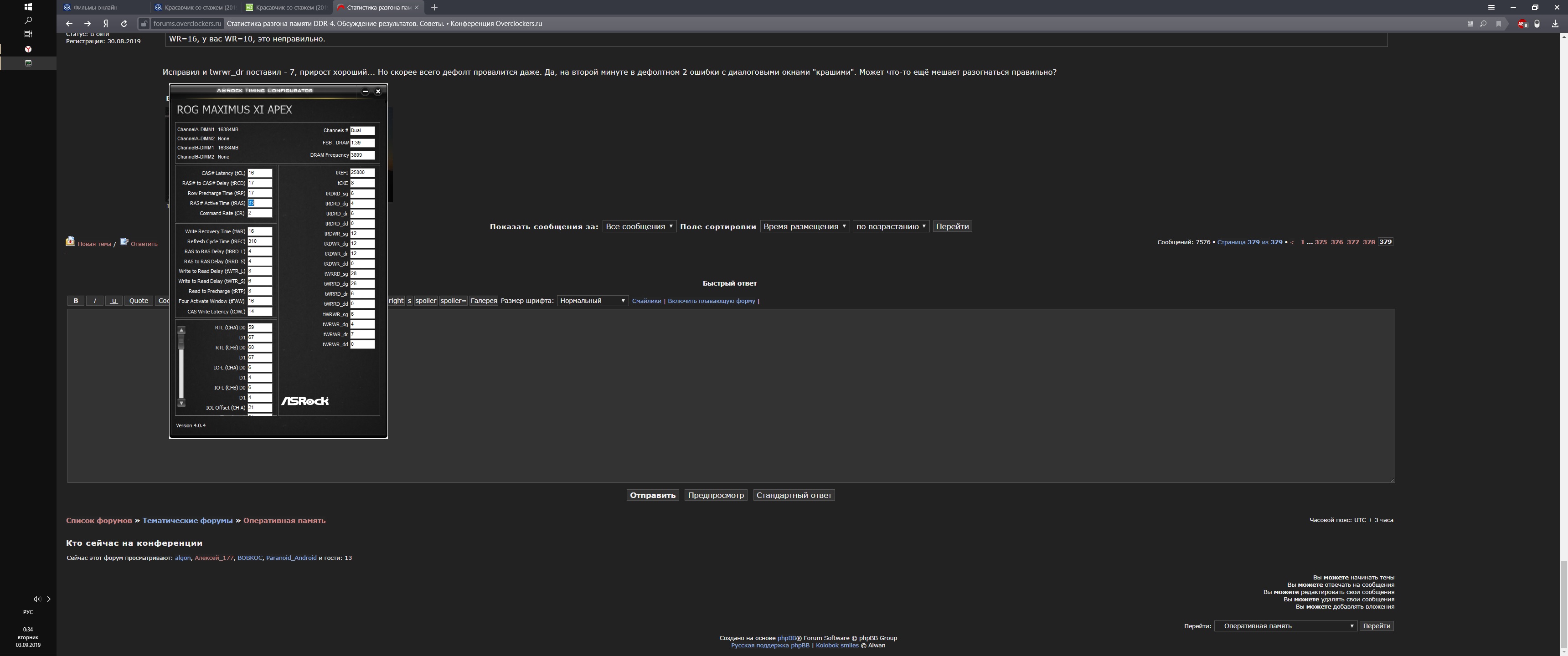 Универсальный гайд. 0. Устраните любые потенциальные проблемы с другим железом. Снимите разгон с видеокарты, снизьте частоту цп на 300 с сохранением напряжения. Не забудьте вернуть RTL в авто если сейчас не авто. 1. Крутим очень короткий мемтест, то есть если минуту живёт сразу снижать тайминг дальше. Ищите не стабильность, а явно сбойное значение тайминга, запишите его - пригодится. Гораздо проще найти явно нерабочее значение и от него плясать чем пытаться ловить нестабильность часами. Это также помогает диагностировать сбойные тайминги на ранее "стабильной памяти". Не пытайтесь найти предельные значение сразу. Сначала скрутите до +2 от минимально стабильного. Многие тайминги идут параллельно поэтому бессмысленно пытаться скрутить до упора с первого прохода. CR выставить на 2 если стоит 1. В самом конце можно попробовать скинуть до 1. 3 Ставить только на очень большую частоту или если по другому ну совсем никак.
