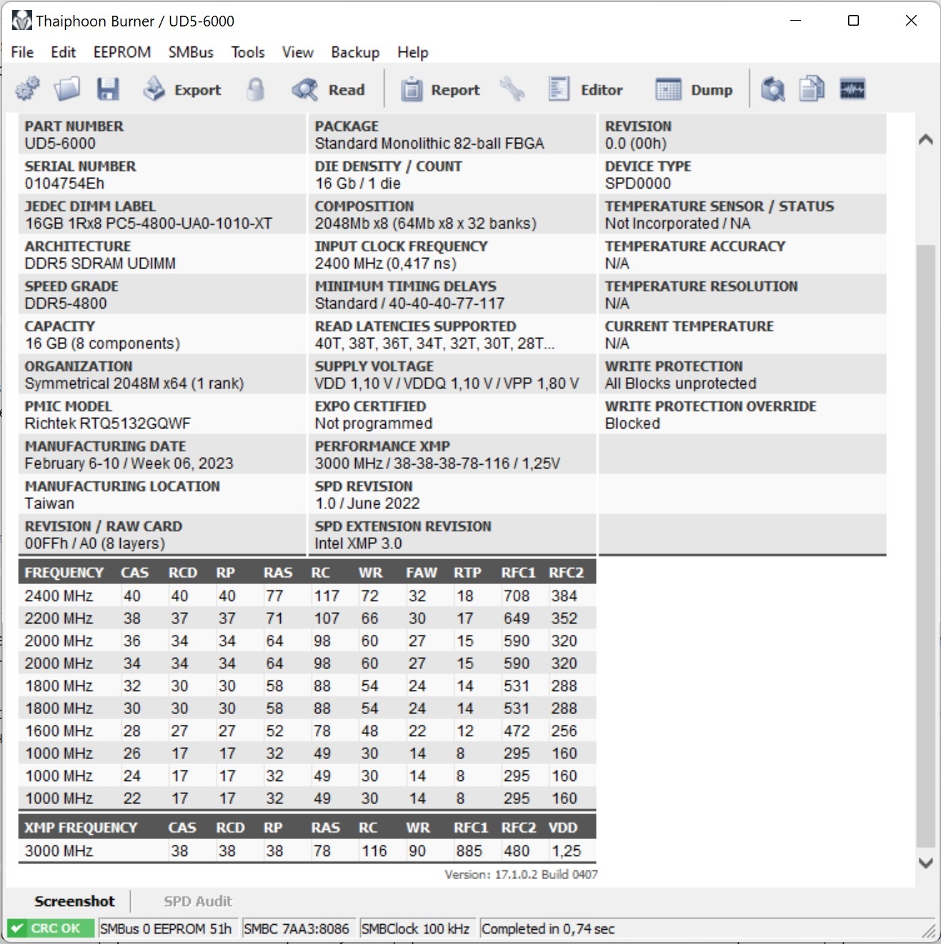 И ещё, у меня 13600kf и похоже уже сам камень бутылочное горлышко - ни на авто таймингах, ни в ручную по формулам, ни в ручную на минимум - никак не приближается ПСП по AIDA до теоретического максимума для выставленной частоты. Например, сейчас 7600МТ/с - значит в двухканале должно более 121GB/s давать, но максимум выдавливает 113,5GB/s на чтение и 117GB/s на запись. Далее включаю 7800МТ/с и при любых таймингах +- те же показатели. Опускаю до 7400МТ/с - чуть проседают до 112 и 114. Разница только в латенси. Повышение частоты разгоняет её до 52, снижение - до 56.