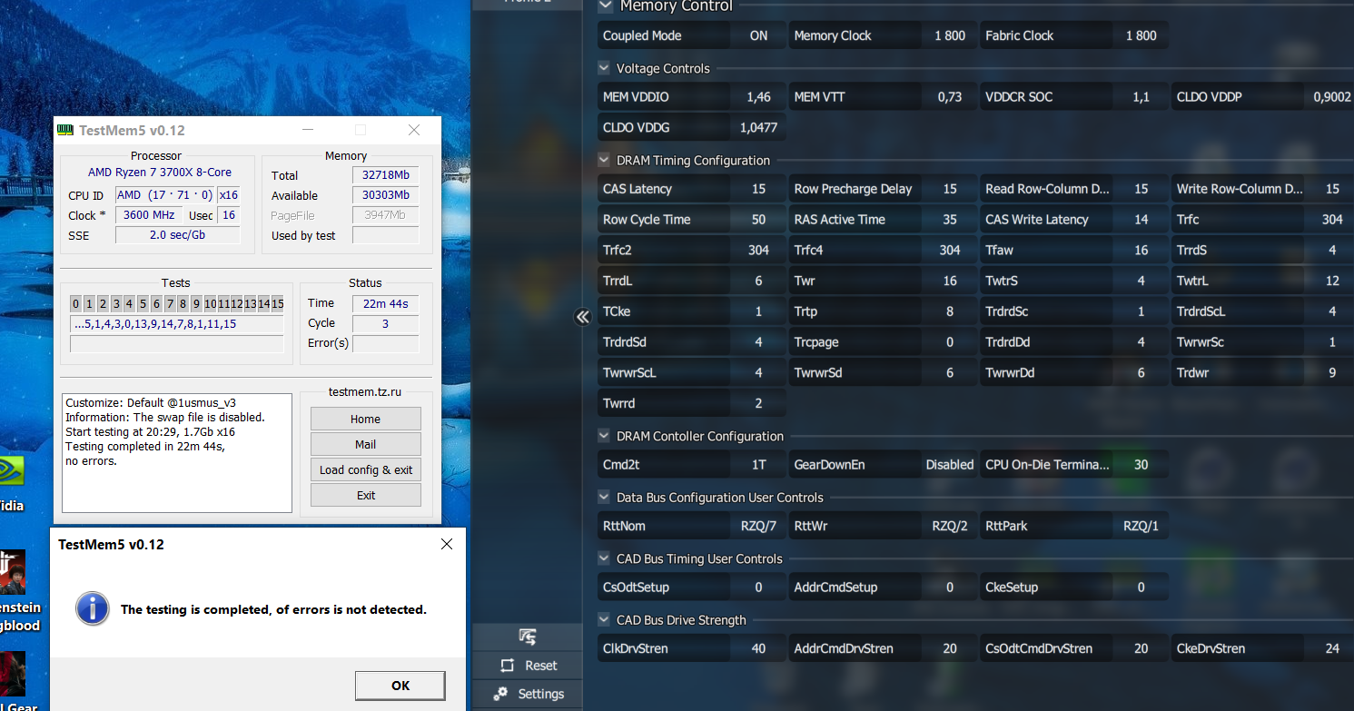 7. При желании протестировать память избыточным тестом в TM5 с конфигом 1usmus_v3 меняем количество 3-х циклов в "mt.cfg", "cycles=3" скажем на 8 или более