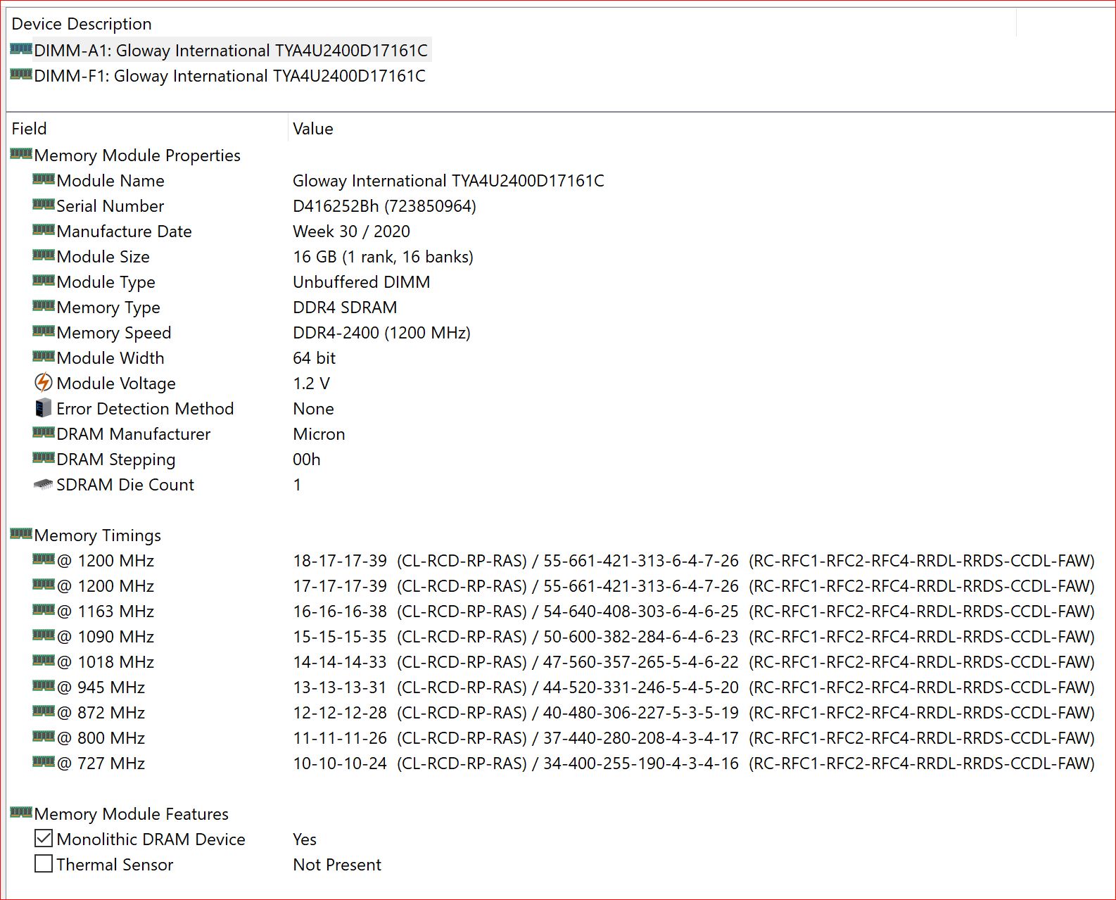 Давеча задумал полный апгрэйд рабочей машины, взял две планки DDR4 по 16Гб вот тут: https://ali.onl/1I68. Брал на удачу, ибо ни про ранки, ни про банки ничо не слыхал, но дуракам везёт. Описание - на кривом русско-китайском, поэтому решение основывал на отзывах. Намедни сделал сборку. Проц в два счёта разогнал до 3.2ГГц, но по ходу разбора полётов стало понятно, что память никуда не гонится (напряжение не поднять, а до таймингов и дело не дошло). Проц не даёт, или, как написано на скриншотах у продавца, XMP2.0 зашит в модули, хрензнает, но свои 2400 память отрабатывает четко в двухканальном режиме. Конфиг моей машины - в подписи. Может, кто чего присоветует? Можно ли такую память в таком комплекте гнать? Спасибо