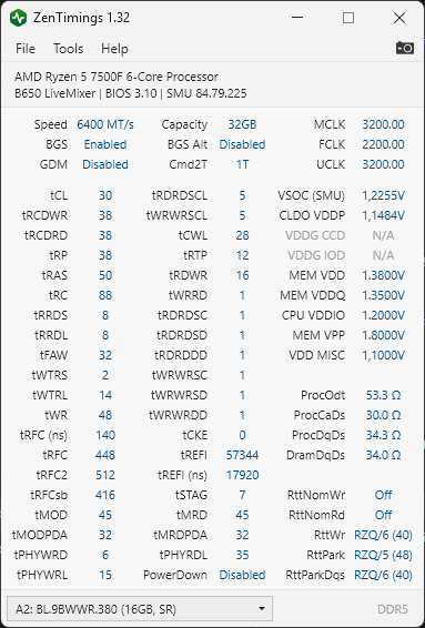 Мой первый пост на данном форуме. Всем приветы! Все борюсь со статтерами в играх, особенно rainbow six siege. Статтеры периодичны, быстрые, на высокой герцовке заметны, иногда почти не статтерит, а временами не проходит. Менял tRFC и tREFI, думал дело в них, основную часть просидел на 416 tRFC и 65565 tREFI, FCLK был 2133, решил попробовать 2200, заметил что латенсия немного поднялась и скорости кеша немного упали в AIDA64. Комрады, подскажите куда мне копать чтобы добиться стабильности именно в играх