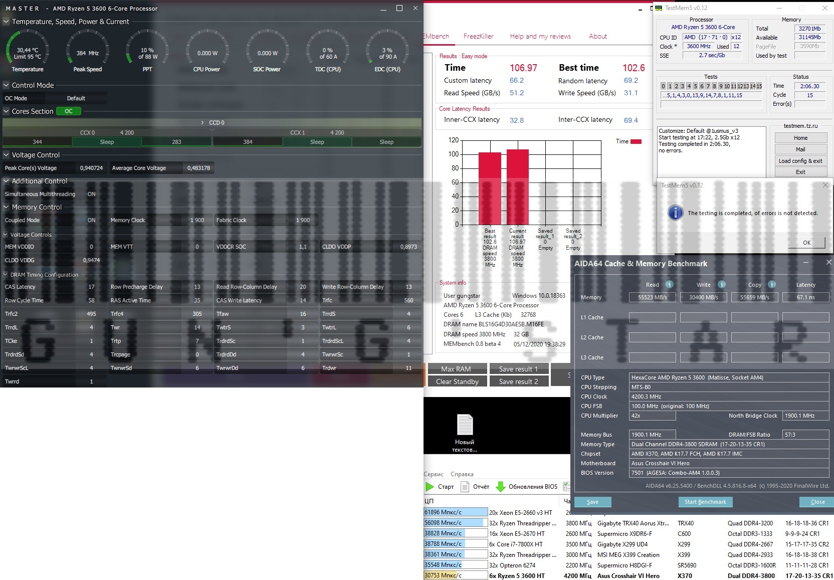 7. При желании протестировать память избыточным тестом в TM5 с конфигом 1usmus_v3 меняем количество 3-х циклов в "mt.cfg", "cycles=3" скажем на 8 или более