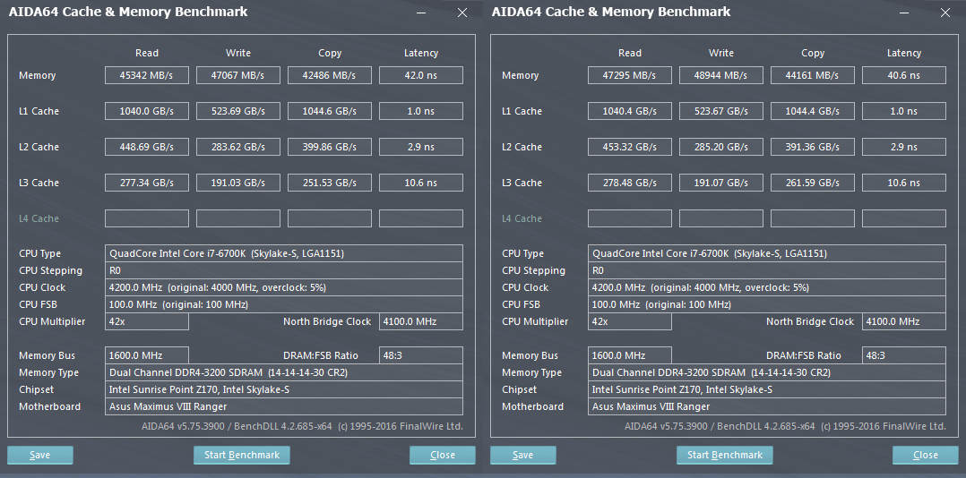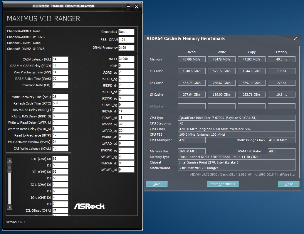 IDimm А можете прогнать аиду с tREFI на уровне 31000? Очень интересно какая разница будет с максимальным значением. (при превышении значения, высчитывающегося по формуле) У меня такая же память, почти) G.Skill Ripjaws V F4-3200C16D-16GVK казалось бы одна цифорка а уже двухранговый D-die, а не b-die. При повышении tREFI свыше 31000, начинает сыпать ошибками.