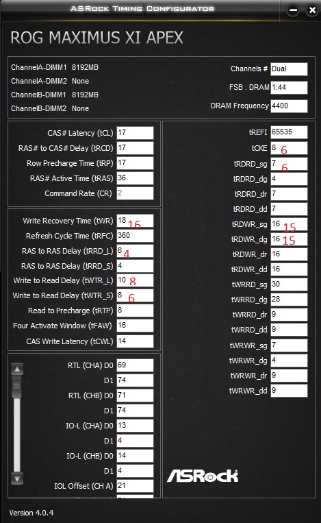 С 4 раза отбора Patriot Memory PVS416G440C9K попался более менее удачный экземпляр. Скажите, что в моем случае будет лучше "поджать". twr подожму до 16. Блок RTL пока не тренировал.