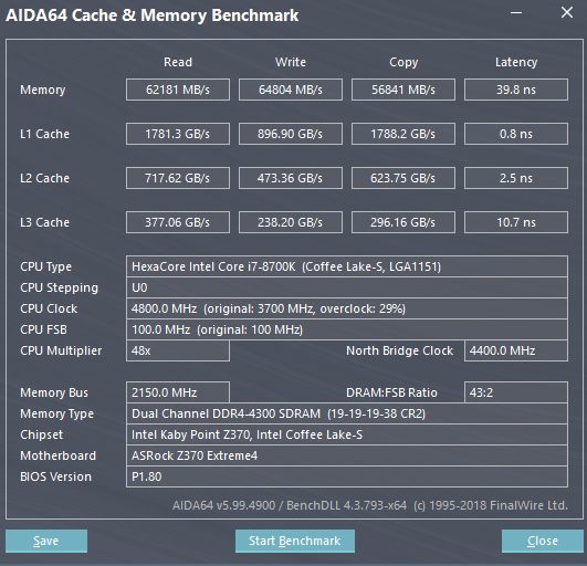 CPU Name: Intel® Core™ i7-7740K CPU @ 4.30GHz Motherboard Model: MSI X299 GAMING PRO CARBON AC (MS-7A95) Total Size: 8192 MB Type: Single Channel (64 bit) DDR4-SDRAM Frequency: 2750 MHz - Ratio 1:31 Timings: 21-31-31-63-2 (tCAS-tRC-tRP-tRAS-tCR) Slot #1 Module: G.Skill 8192 MB (DDR4-2137) - XMP 2.0 - P/N: F4-3200C14-8GVR