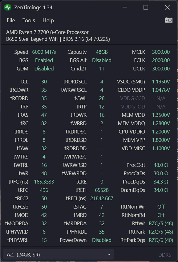Все вроде бы пишут, что для режима 2:1 SoC и VDDIO меньше нужно чем для 1:1. Но у меня почему то VDDIO для 6000 нужно 1.2v, а для 7600-7800 уже 1.35. Если поставить 1.2 (как для 6000), то ТМ5 бегает без проблем, но карху гдето на 10000-20000% ловит ошибку стабильно. Может я чтото делаю не так с другими вольтажами и есть зависимость?