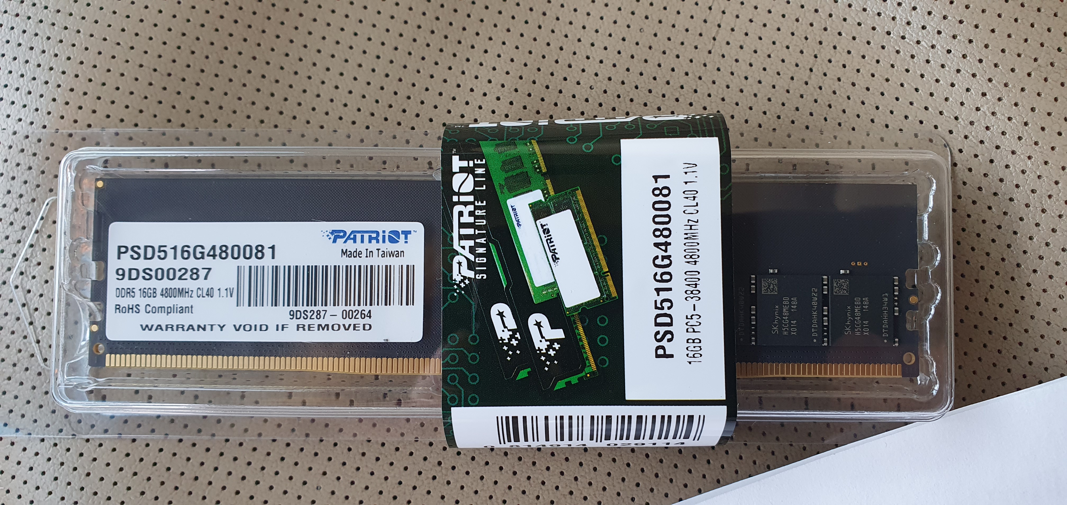 После трех заказанных кинстонов зеленых на микронах и один на самсунге, первый заказанный патриот по пятнашке за планку приехал на ханиксах (патриот походу весь на ханиксах) мало ли кому интересно.