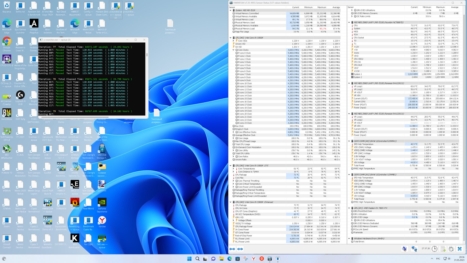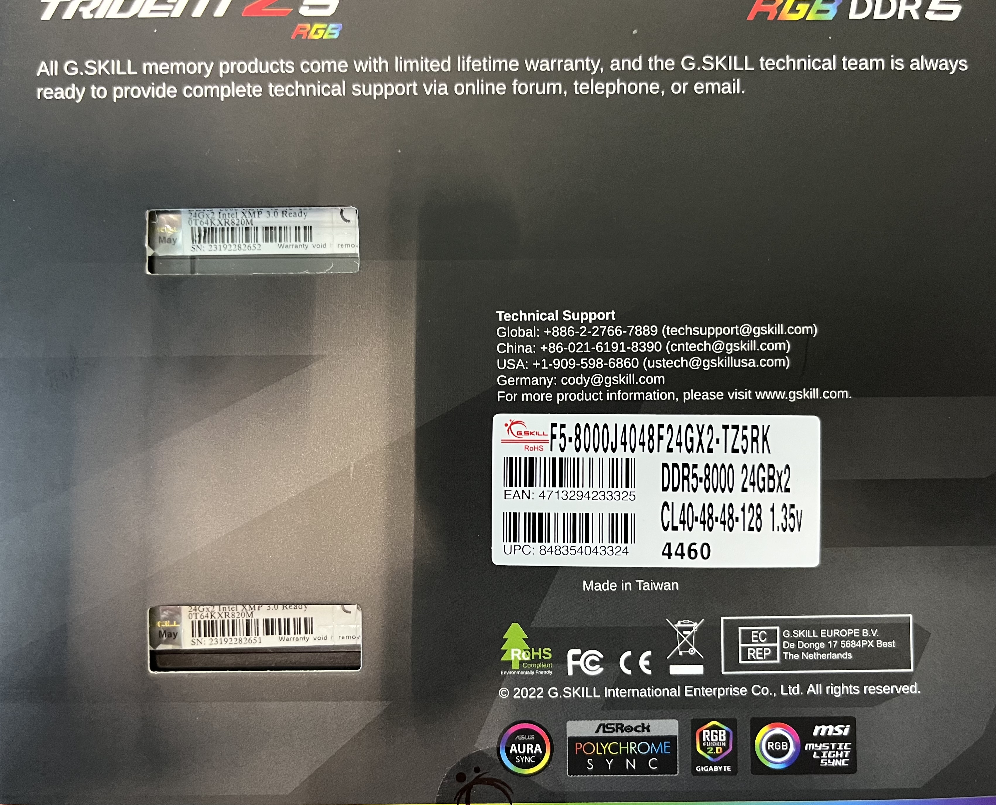 Team T-Force Delta RGB 32GB (2 x 16GB) 288-Pin PC RAM DDR5 7200 (PC5 57600) Desktop Memory Model FF3D532G7200HC34ADC01 msi z690i unify 7600 MHz (34-44-44-58-102-2T) TM5 extreme 24 часа прошел (скрин не делал) y-cruncher 24 часа прошел Karhu RAMTest ошибка через 18 часов