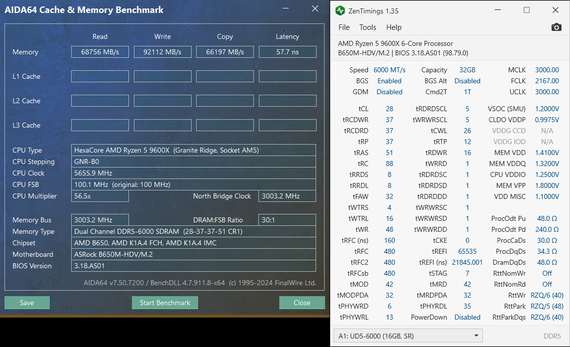 Решил отказаться от 6400 в пользу 6000 из-за серьезно меньшего напряжения на SOC. Фабрика на 2200 живёт в тестах памяти, но в tm5, когда он жарит проц, то через 20-50 минут возникает ошибка. rcdwr rcdrd непобедимы, либо я не знаю как с ними бороться, когда 36, то ошибка лезет буквально сразу же. Меня смущает напряжение на память, насколько это нормально на повседневное использование, потому что меньше cl уже не идёт. Нитро 1/2/0