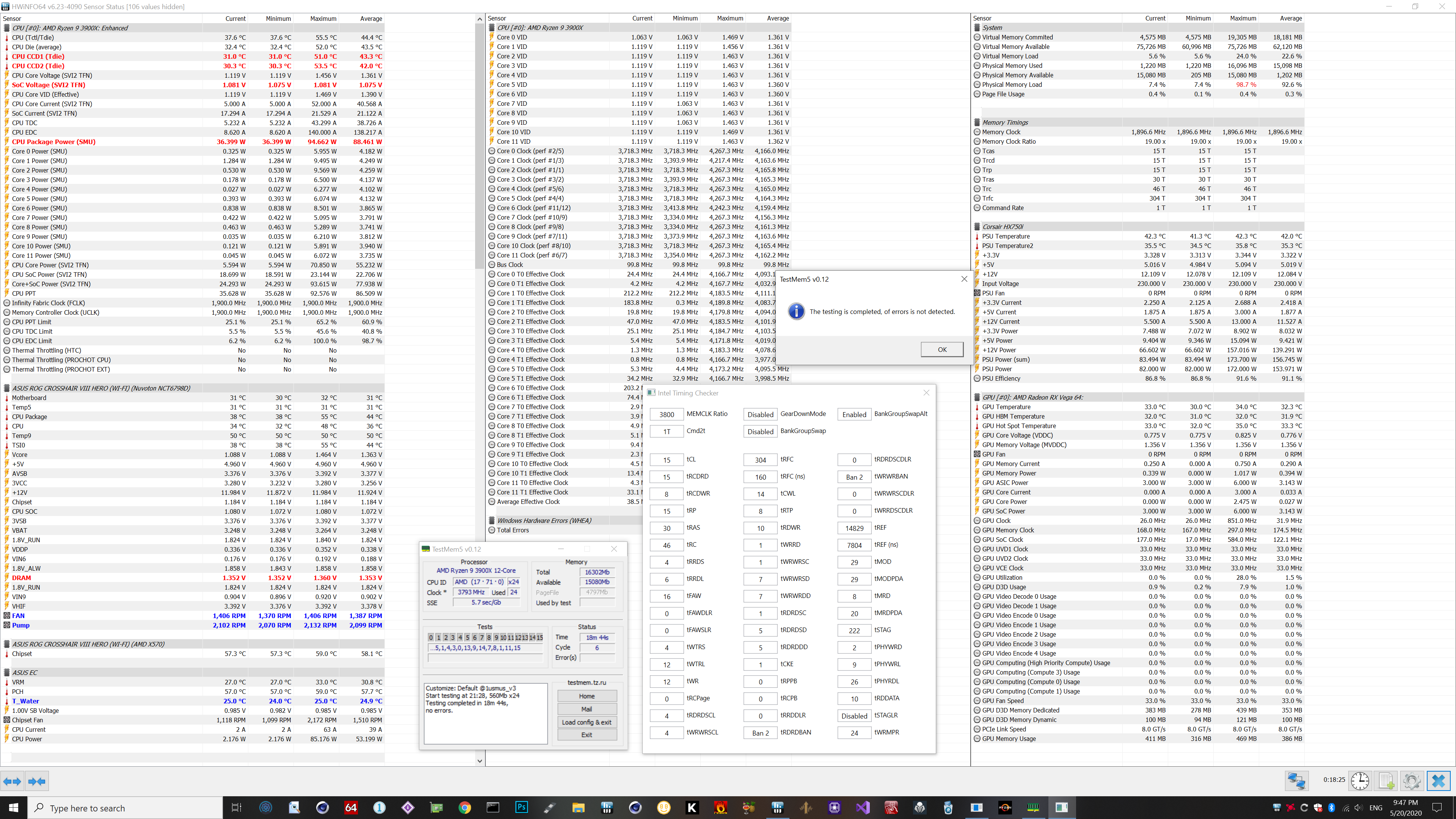 4. Перед настройкой частоты и таймингов рекомендуется установить принудительное охлаждения на модули памяти, особенно для памяти с чипами Samsung B-die, повышение температуры памяти выше 48°, может сопровождаться дополнительными ошибками, не связанными с неправильной настройкой таймингов, что затруднит их поиск и общую настройку памяти.